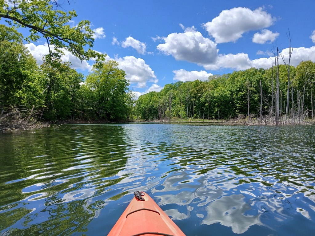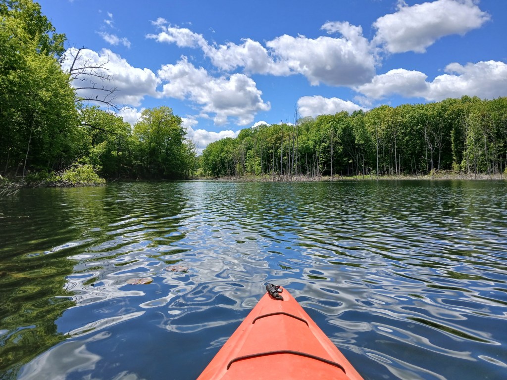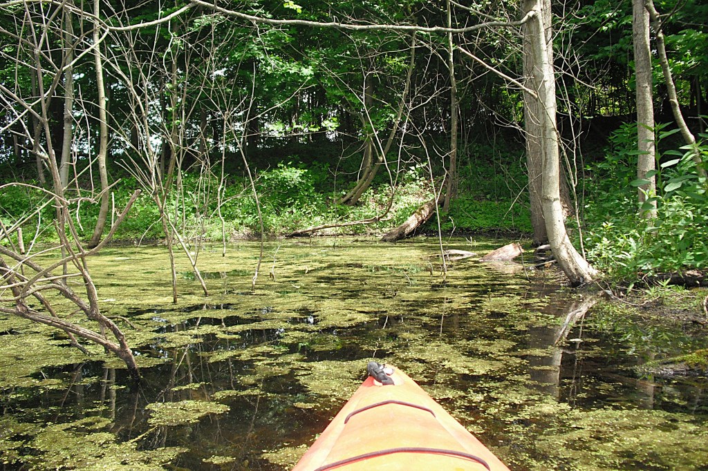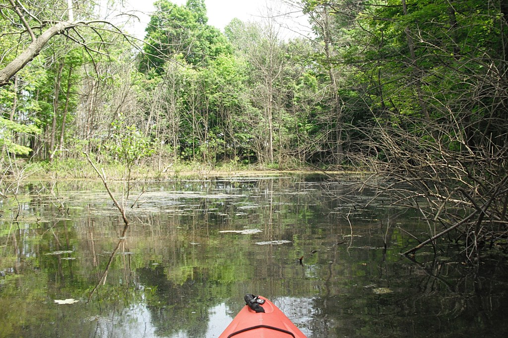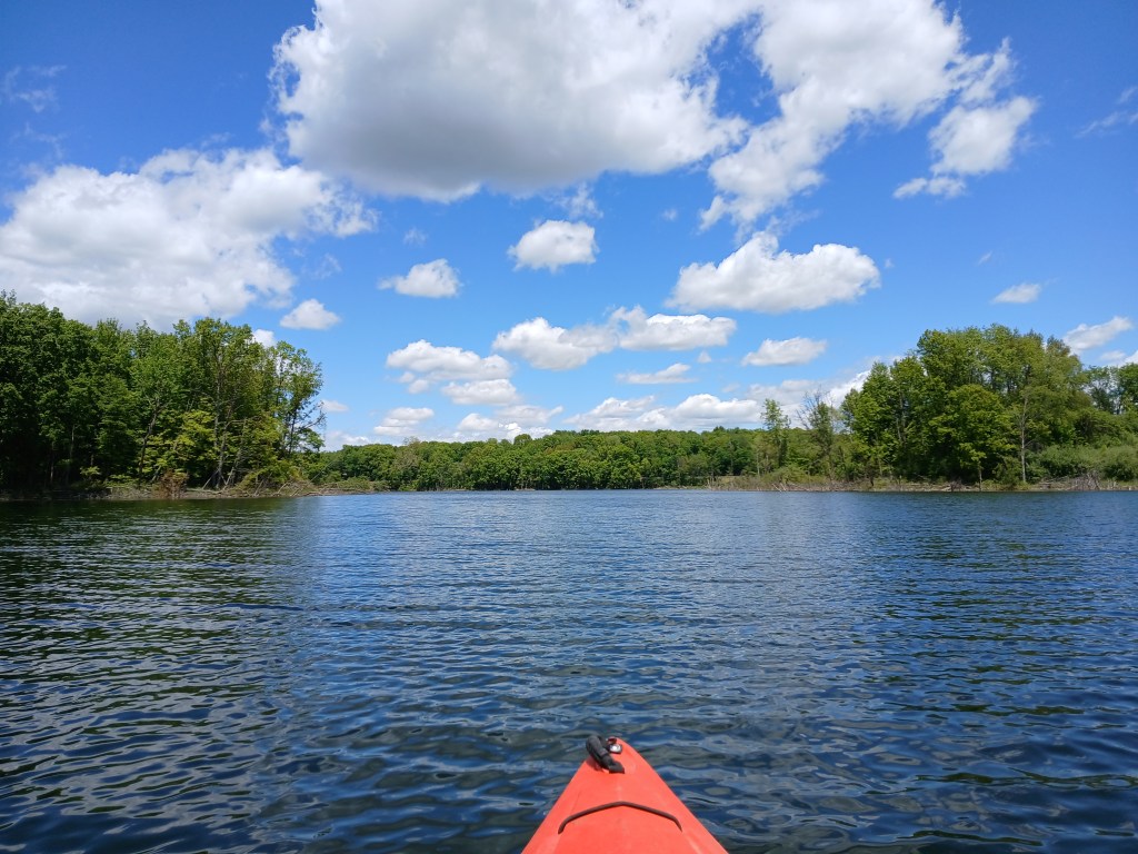 I recommend kayaking the shoreline of the north basin. Ravine Road travels along the north shore of the north basin, but it’s not all that noticeable.