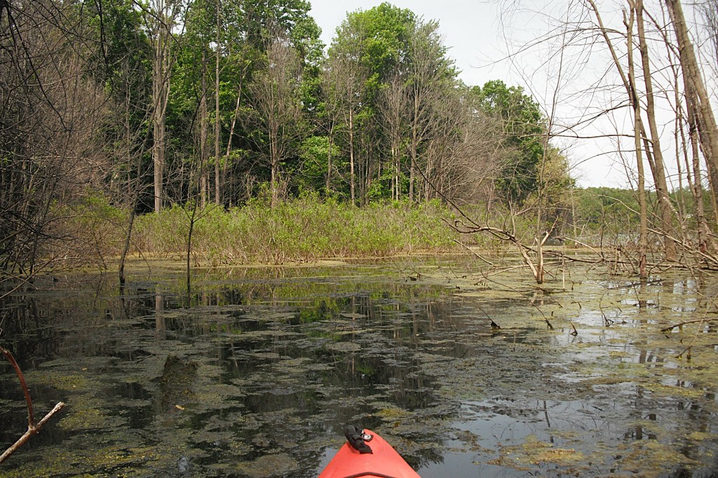 As you enter the north basin, there is a cove to explore to the east. This photo looks west from the back of the cove. It may be coincidence, but I always seem to find something interesting in this cove. On my latest visit, I watched two huge snapping turtles fighting. I was only four feet away from them!