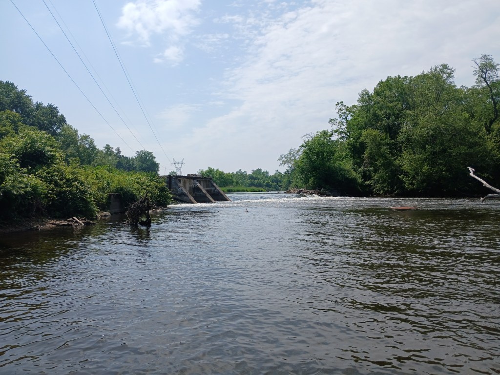 Both channels around the island are navigable. After paddling around the island, the channels converge and there is a dam spanning the river. This dam diverts water to the millrace, which flows off to the left, above the dam. The river flows over the dam. The millrace rejoins the Kalamazoo River farther downstream, creating the island that the city of Plainwell is situated on. Hence the nickname, “The Island City”. There are three options when you approach the dam. Option one is paddling the millrace through town and taking out at Fannie Pell Park. The second option is paddling over the dam. This option can be dangerous for beginners and inexperienced kayakers. We decided to take option three, which is portaging the dam and continuing down the river. The portage is on the right side of the structure. There is a sign identifying the portage and a footpath that will take you downstream from the dam. Make your choice wisely. Always paddle within your limits and abilities. Be safe.