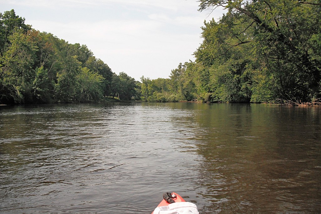 The river winds its way toward Morrow Lake at a moderate pace. The river corridor is wooded and there are only a few homes on the river bank.