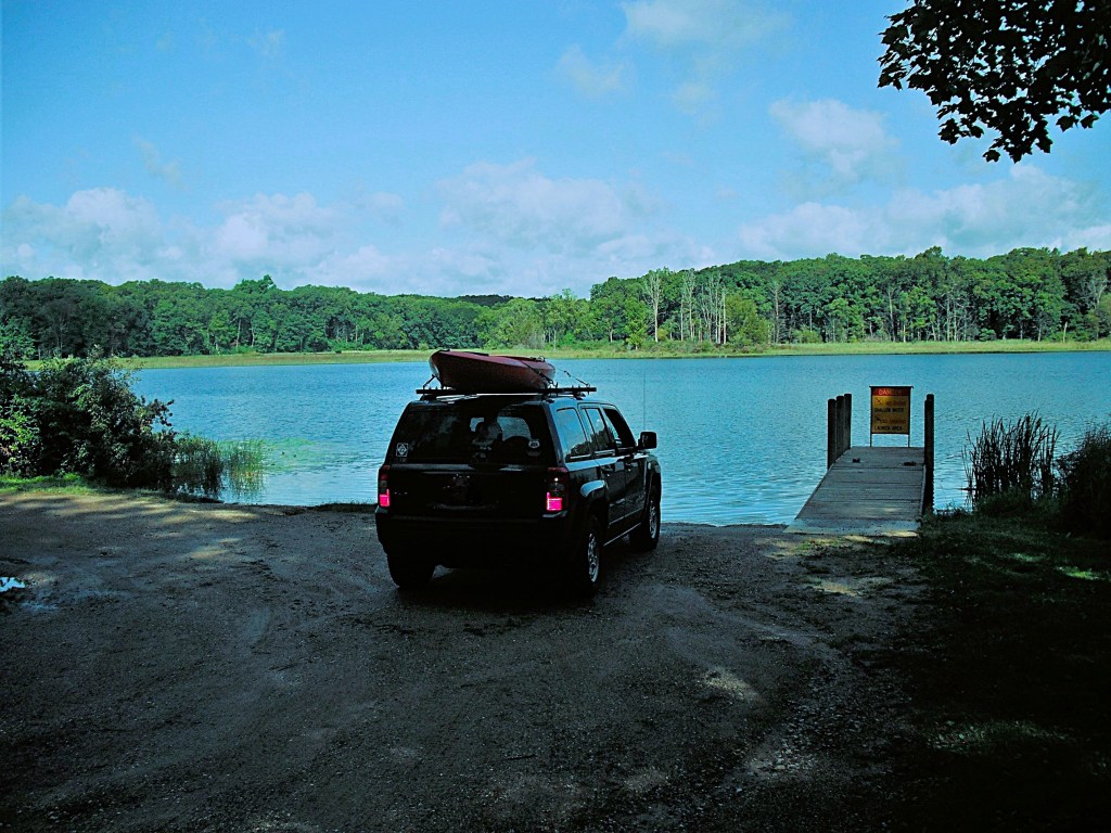 The site has a couple of picnic tables, making it a scenic, shady spot for my lunch. I have been known to take a dip in the lake here also.