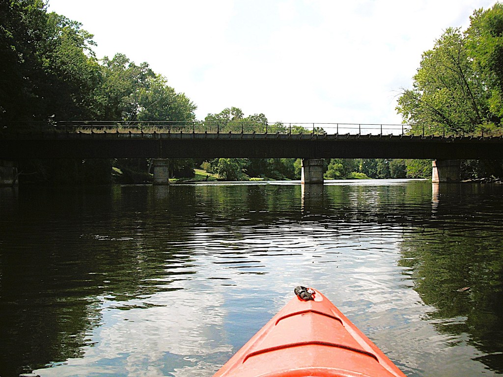 Just after you push off from the landing, you will pass by the supports of the old Farrand Road bridge. About a mile downstream are the remains of a railroad bridge that dates to 1889.
