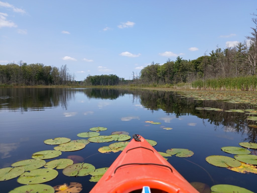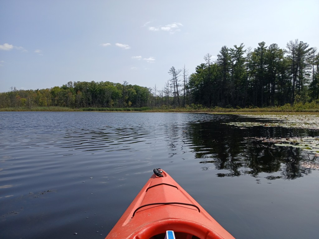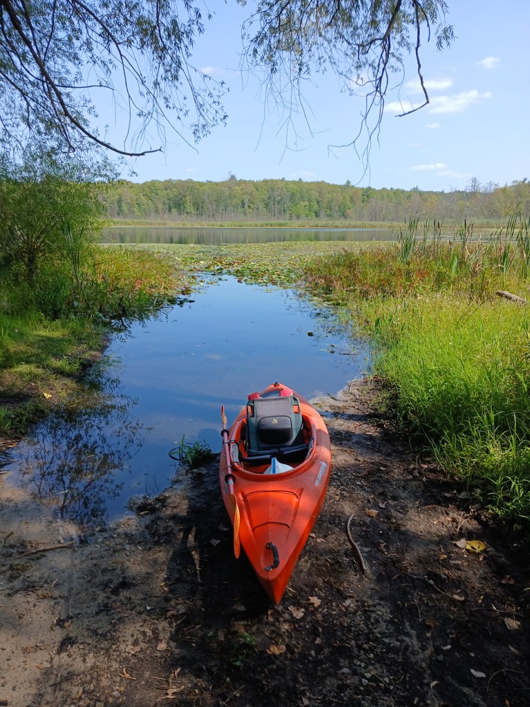 The site and the surrounding area is home to the biggest pine trees in southwest Michigan. Other stands of these huge pines can be found throughout Yankee Springs. At the landing, under the shade of the forest canopy, is one of my favorite spots to take a lunch break. Right in the middle of the access site is a huge maple tree and next to it is a pine tree of equal size. They grew so close to each other that they fused together, appearing as one tree! You never know what you’ll see when you spend time in the outdoors!