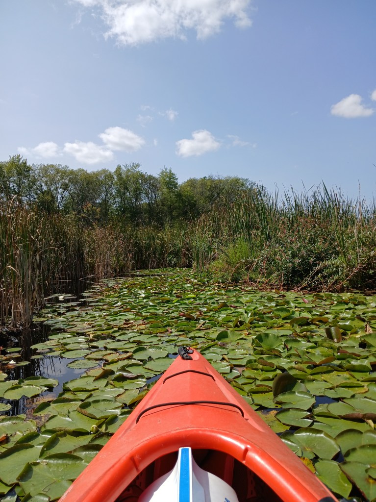 I paddled through the narrows, back to the north basin and the boat landing, ending a scenic trip.