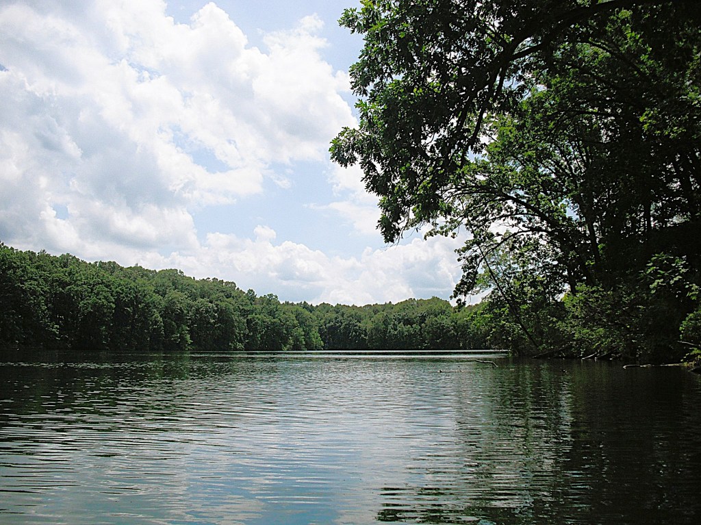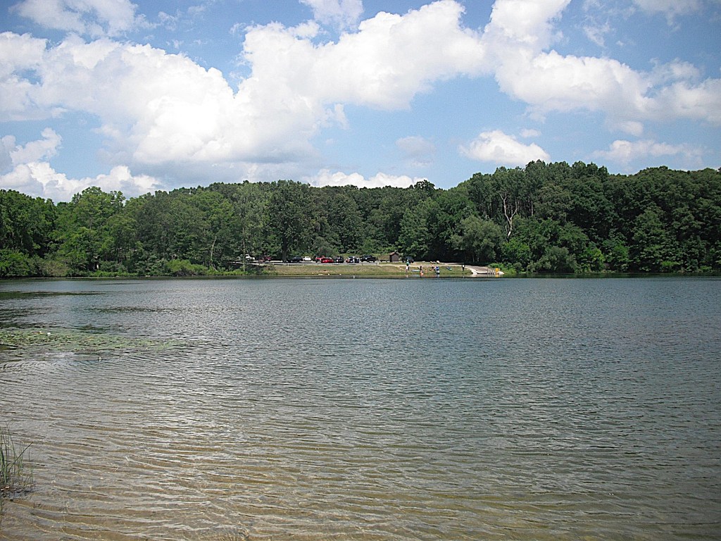 With the exception of the dam, the beach, and the picnic area, the shoreline is all wooded.