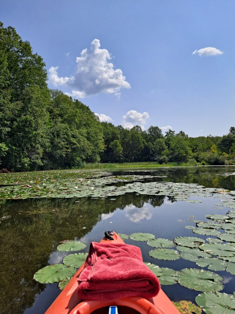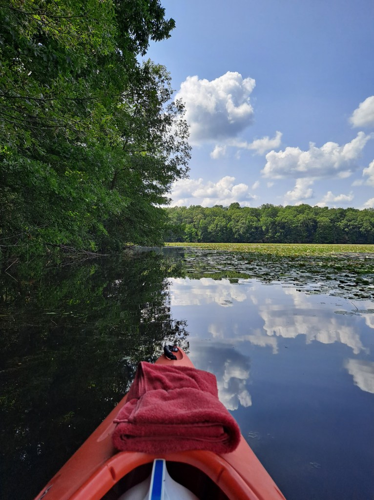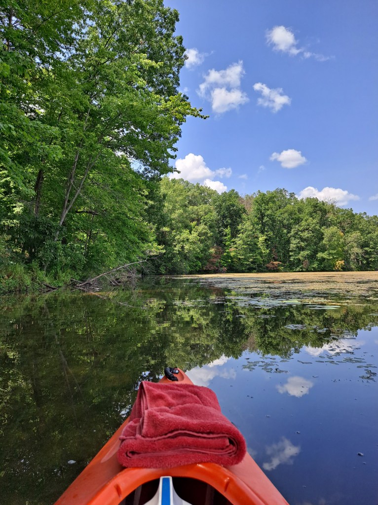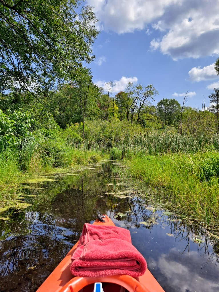 If you are a stealthy paddler, expect to see lots of fish in the shoreline shallows. Most of the fish are carp, but bass and bluegills are also present.