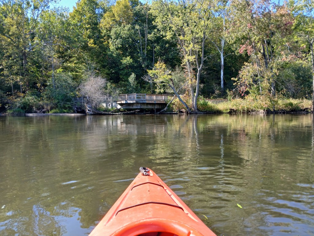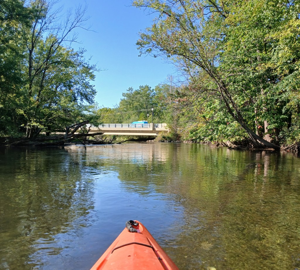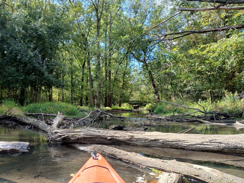 The current pushes trees and tree limbs against the bridge supports, forming logjams. I found two open passages under the bridge. The rest were blocked. Maybe more will be open when you make your trip. It’s quite possible that you might have to portage.