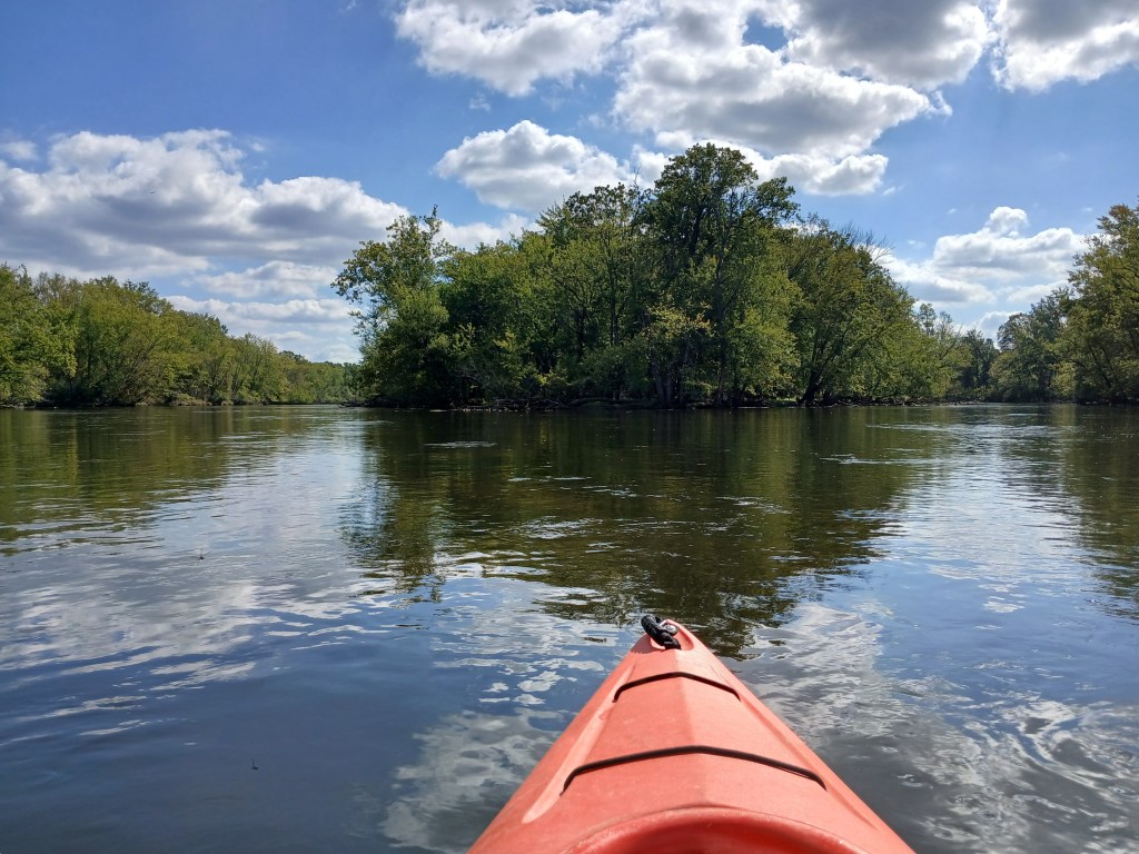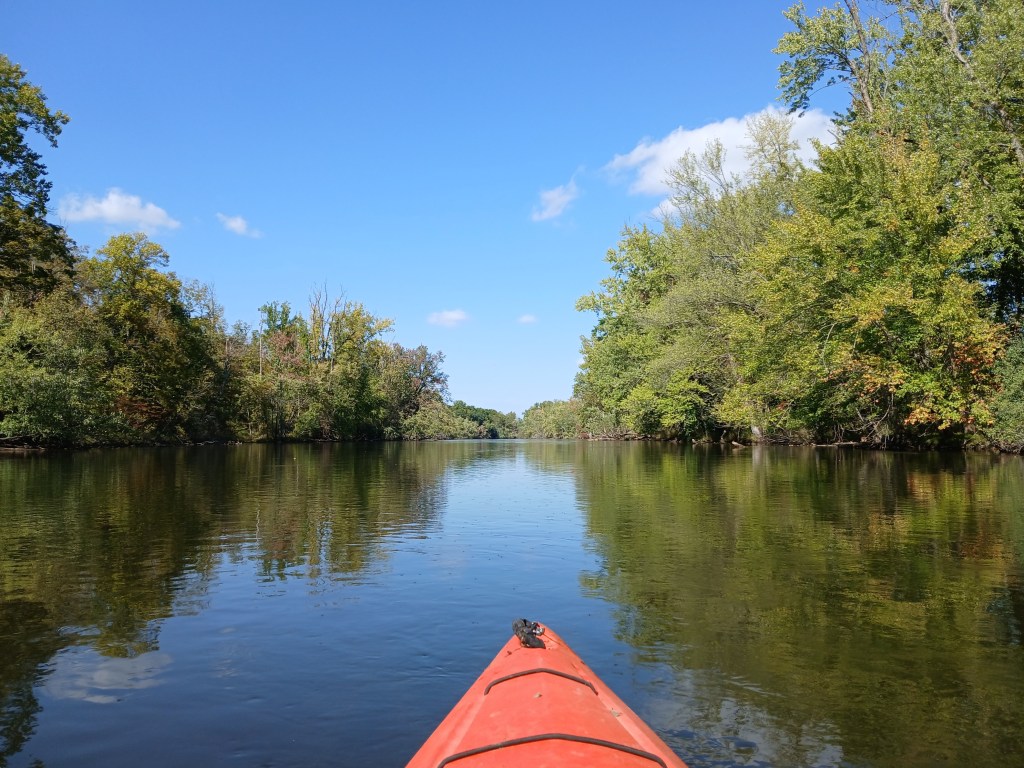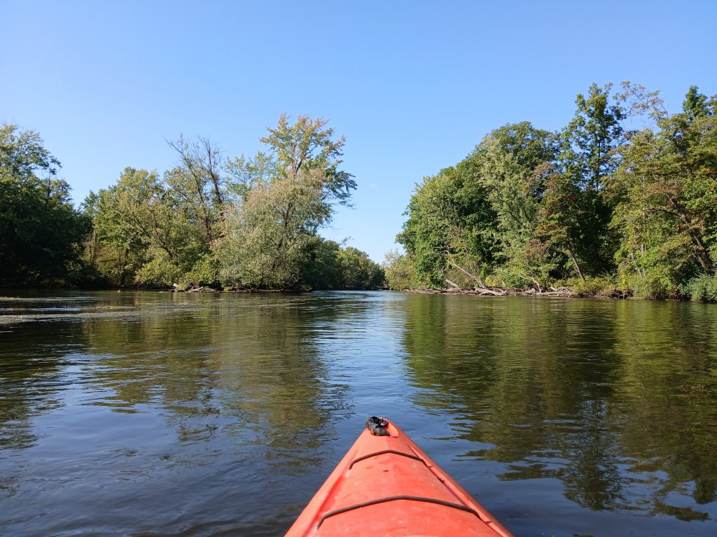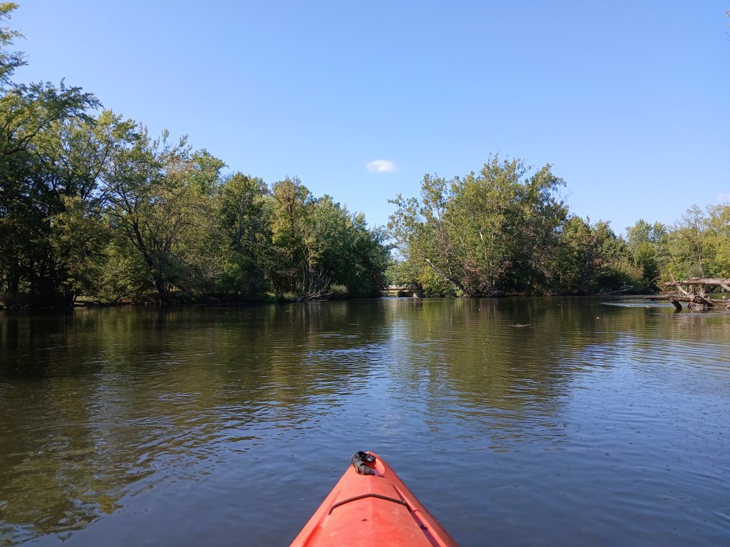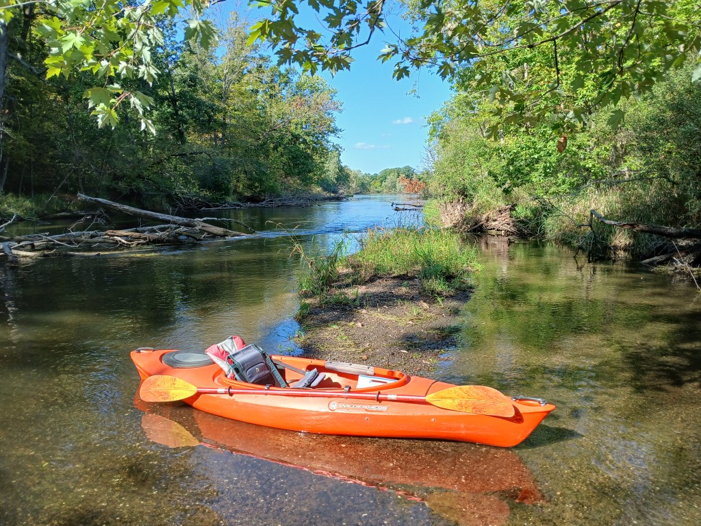 This trip is suitable for all skill levels. The river is wide with a sand and gravel bottom. The current varies between slow and moderate. The depth ranges from a foot deep to over six feet deep. The last time I kayaked this stretch of the Kalamazoo River was in late September of 2025. Water levels were extremely low.