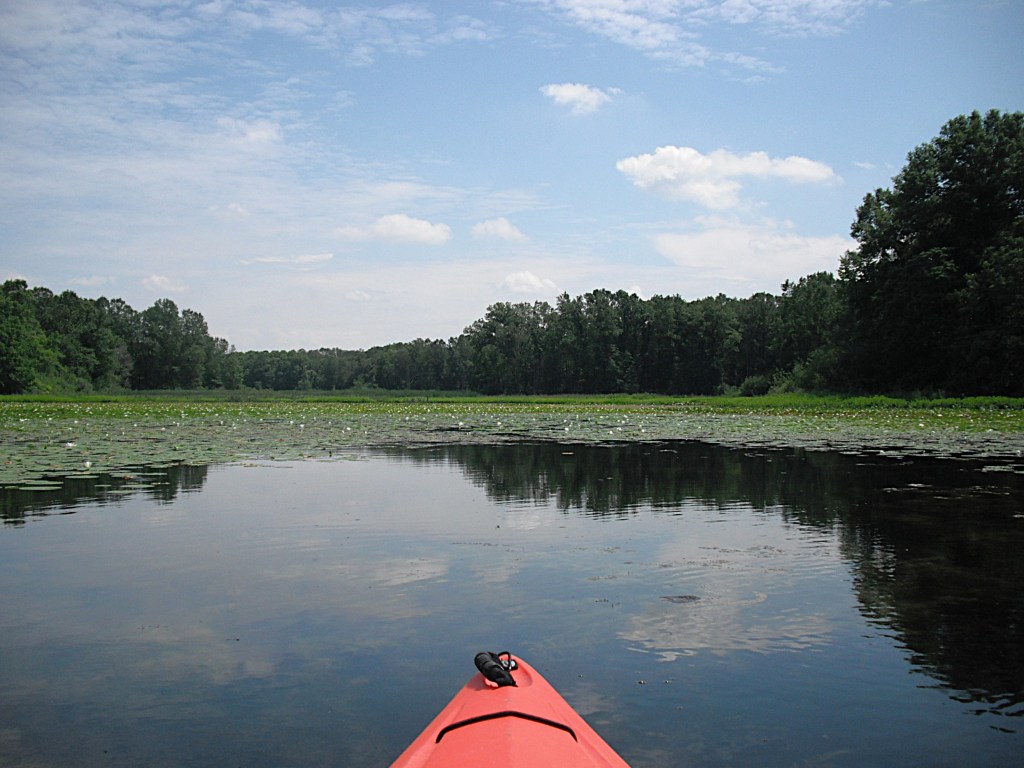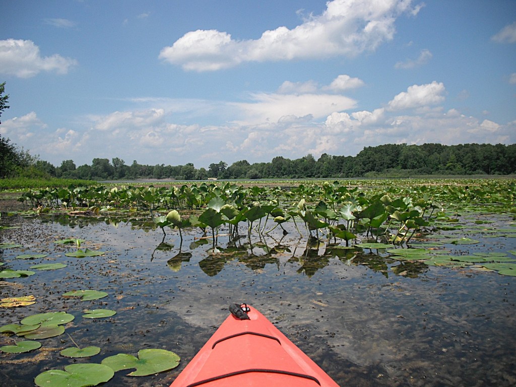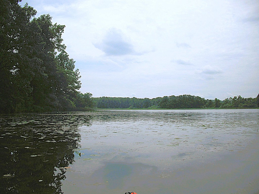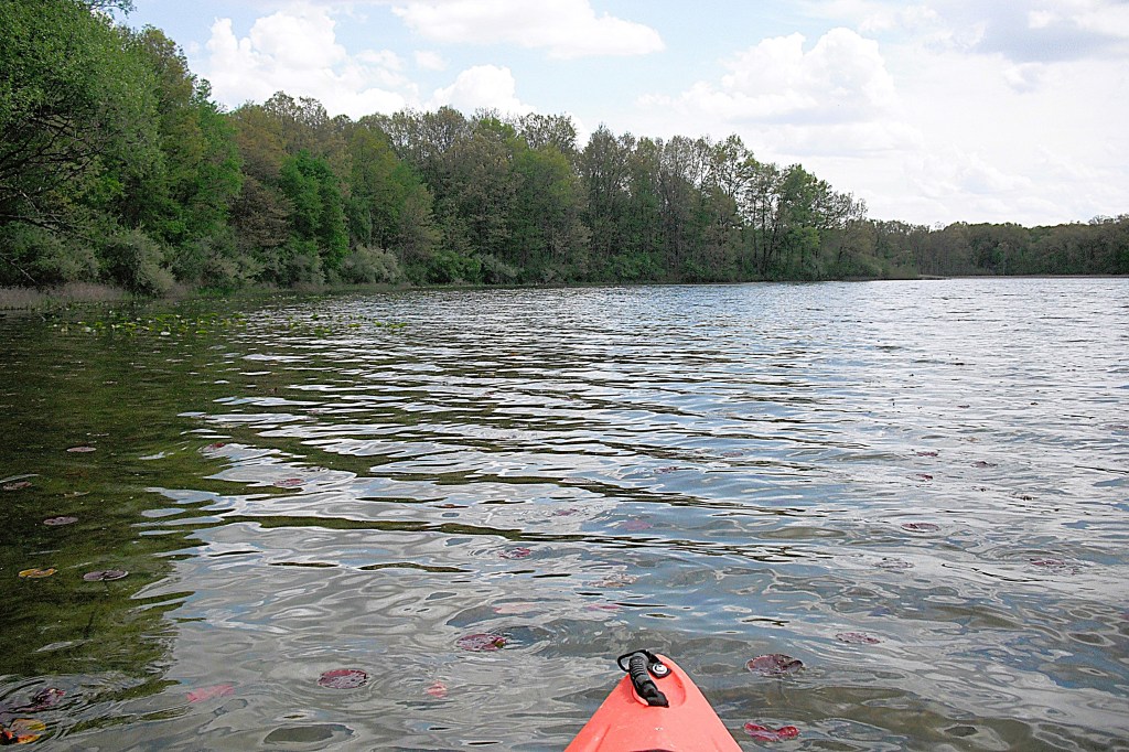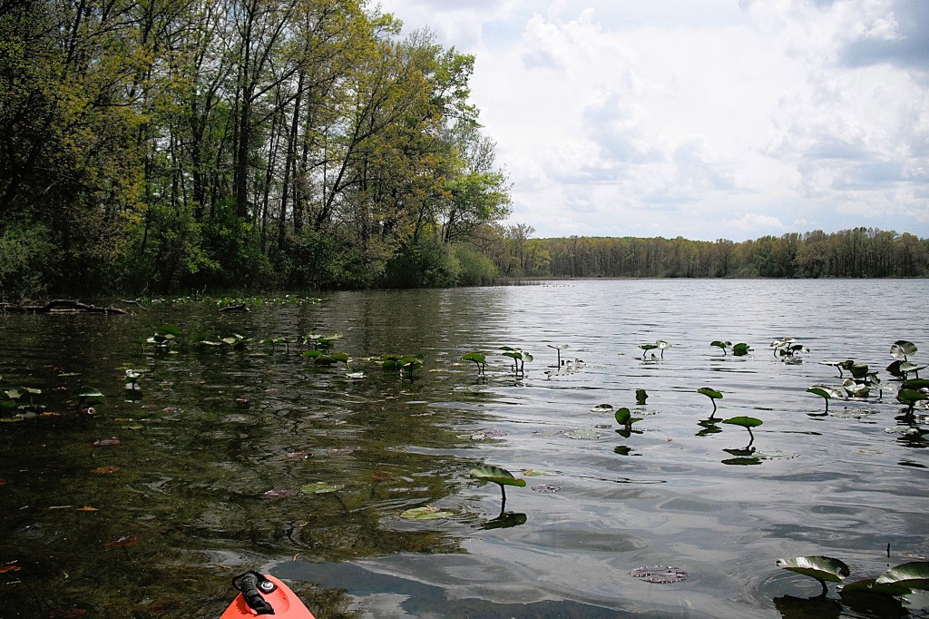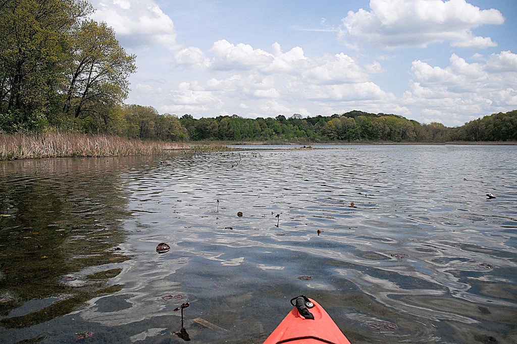 A couple years ago, during springtime, this cove was loaded with carp. I paddled in and sat still. I was surrounded. At times, the carp bumped into my boat. One large carp nestled tight against the side of my kayak with its back out of the water, so I petted him. Judging from his reaction, he didn’t like it.