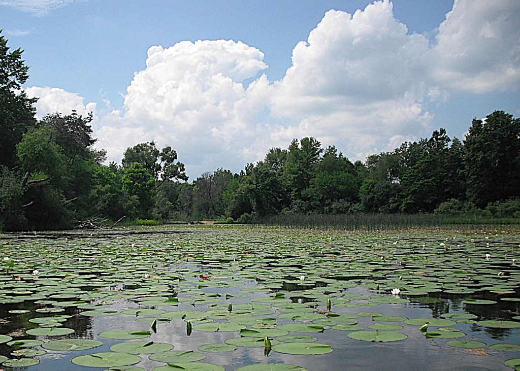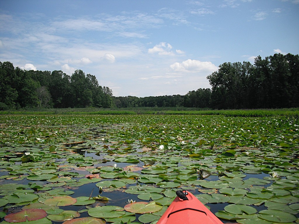 You can venture into this cove by paddling areas of sparse pad and weed growth.