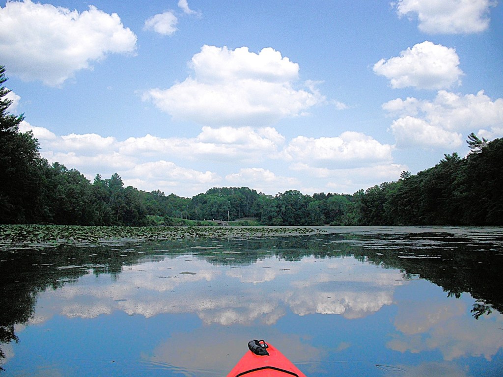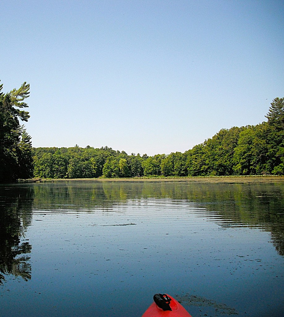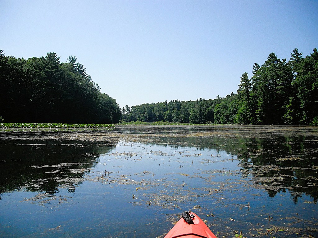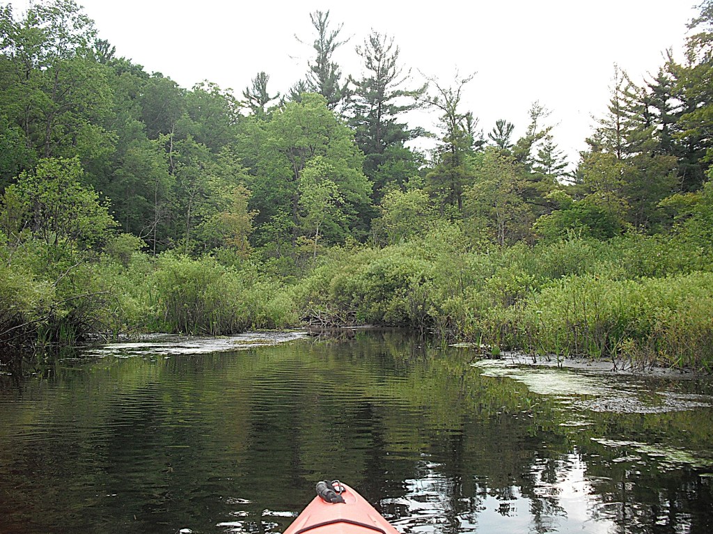 You will have to walk your kayak through some of these shallow spots. After the shallows, the creek gets narrow and will require some maneuvering.