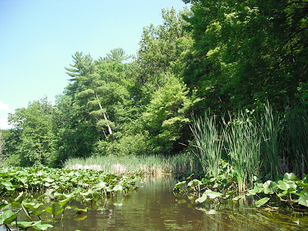 I thought about going to the nearby Lake Allegan instead. After consideration, I decided to stay with Swan Creek Pond. I was glad that I did. The vegetation did not cover the whole lake. Although the water surface on parts of the lake was not very scenic, the beautiful heavily wooded hillsides surrounding the lake made up for it.