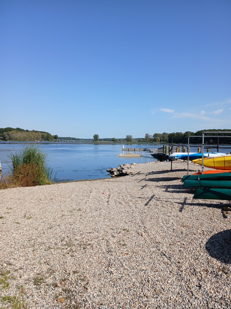 As before, exercise caution with the boat traffic. I was concerned that paddling against the current on the return route would be difficult. My fears were unfounded. The current was negligible, practically nonexistent next to the shore. I lucked out and had a stiff breeze at my back on the way across Kalamazoo Lake and I didn’t have to paddle much across the lake to the landing. I hope you have as good of a time as I did on this adventure.