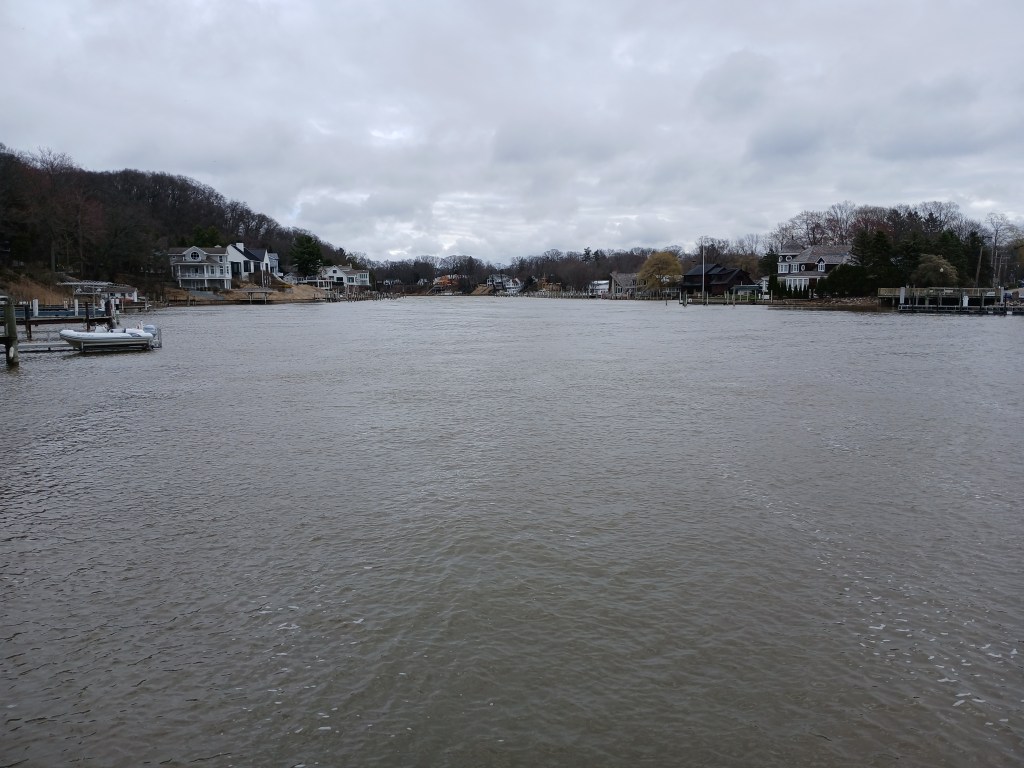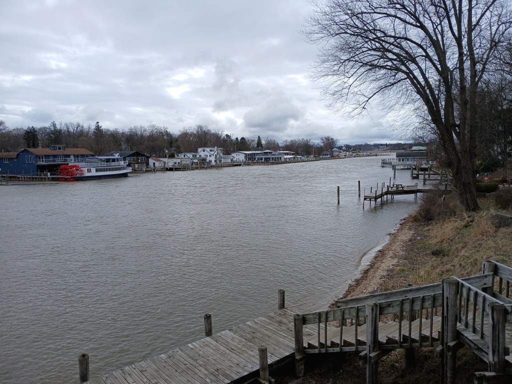 Hills go down to the river’s edge. Beautiful homes are perched on the sides and tops of the hills. Boats are docked in front of the homes. Saugatuck takes on a entirely different look during the colder months of the year. The following photos were taken from shore on a winter-like day in early April.