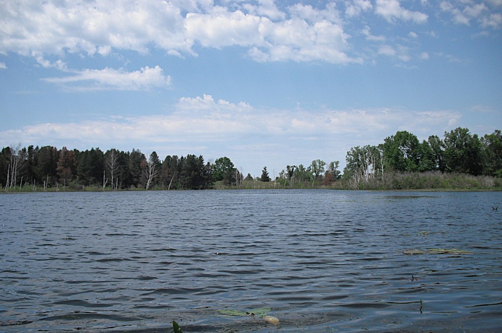 The north and west sides of the lake are characterized by wetlands and low dunes.