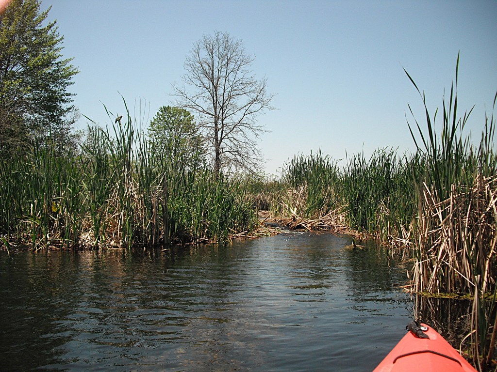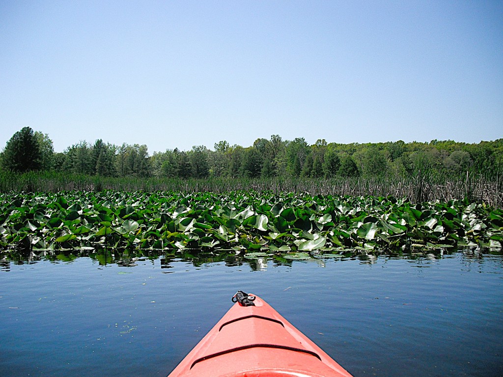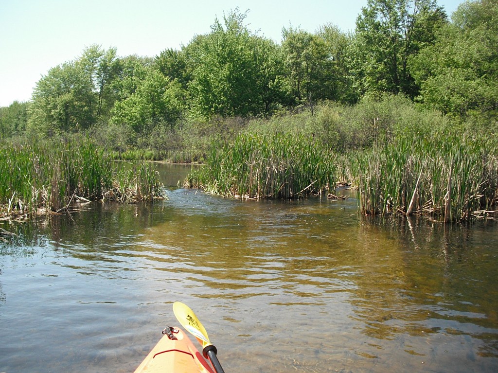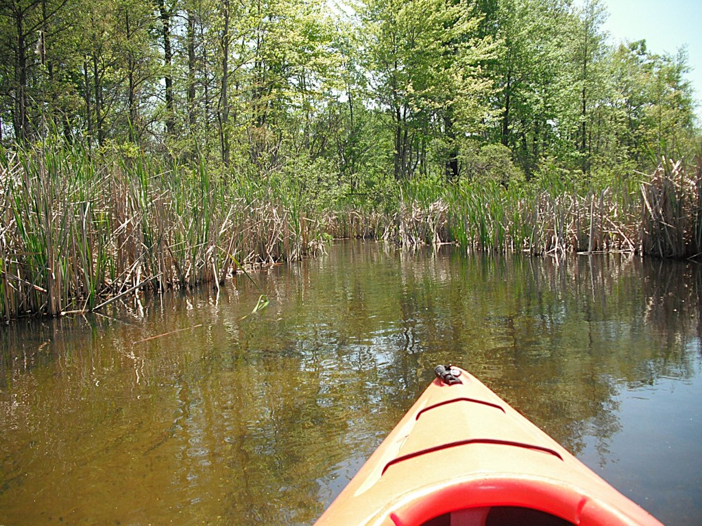 After the two beaver dams, the creek enters a vast cattail marsh. If it is early spring or late fall, the paddling through the marsh is easy. In the summer, the stream in this section is a series of dense lily pad fields that will give you a workout. Good cardio!