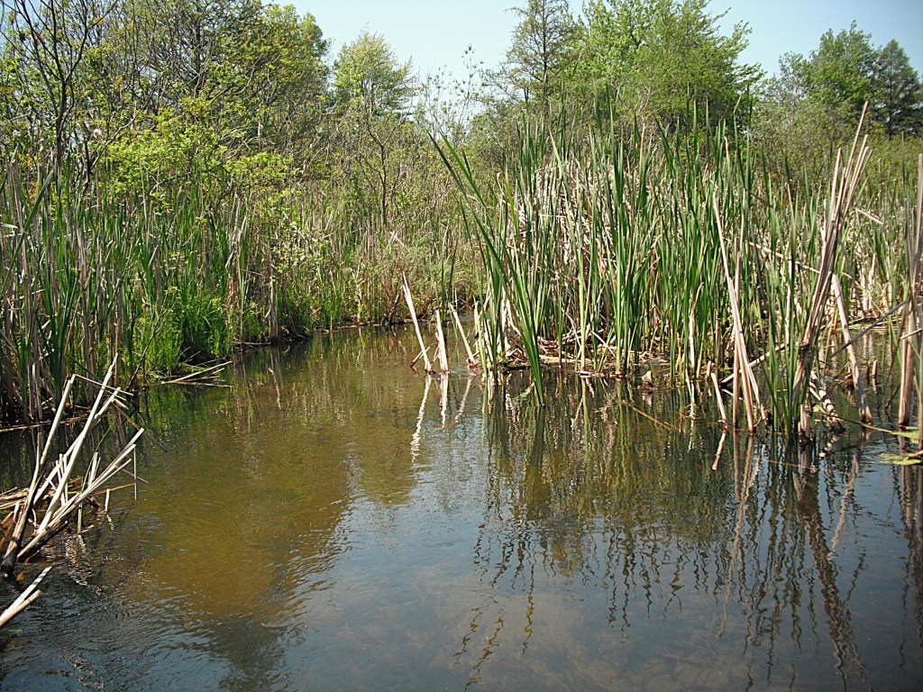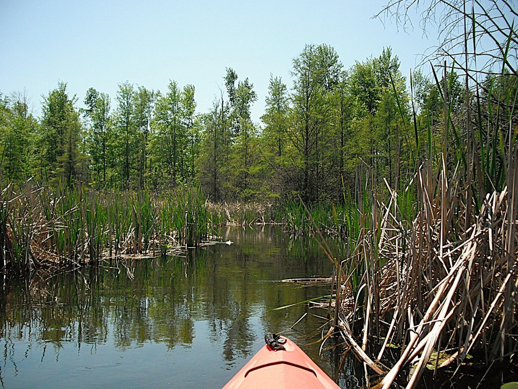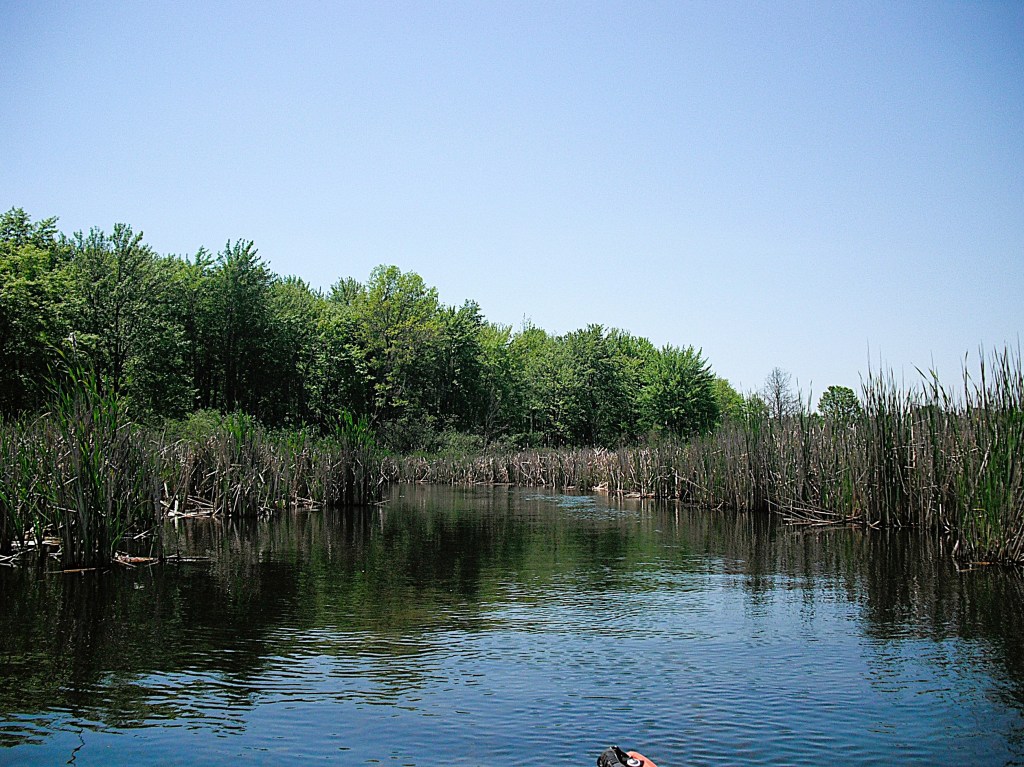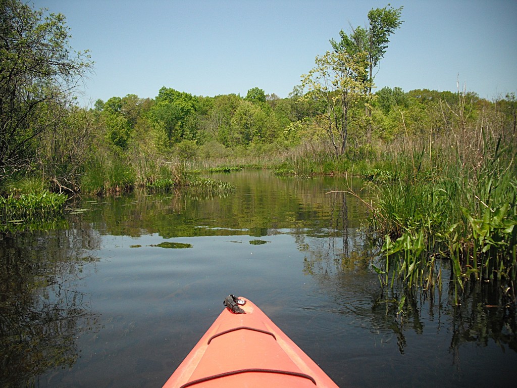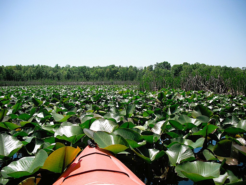 After the two beaver dams, the creek enters a vast cattail marsh. If it is early spring or late fall, the paddling through the marsh is easy. In the summer, the stream in this section is a series of dense lily pad fields that will give you a workout. Good cardio!