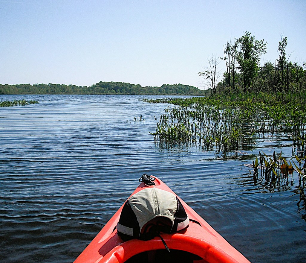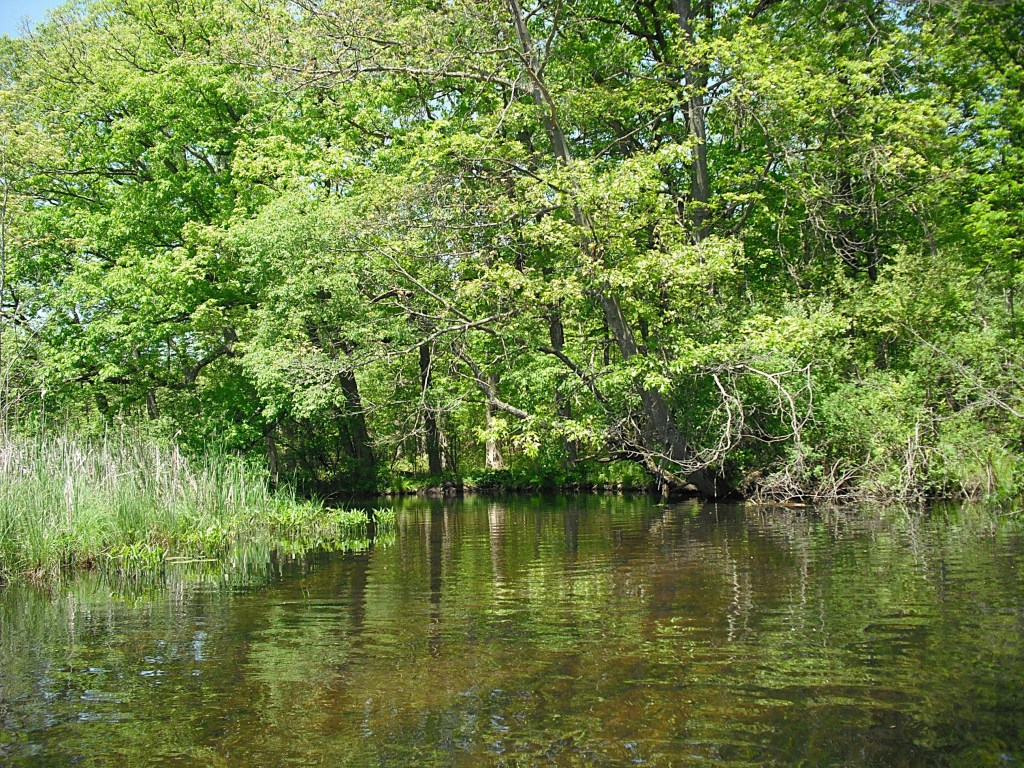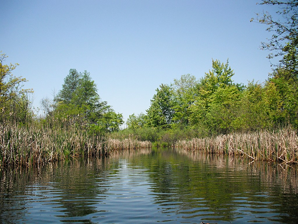Follow the west shore of Gourdneck Lake to the creek mouth and you are ready to begin. The creek is anything but straight. The first portion of the creek is bordered by wetland with a few scattered trees.