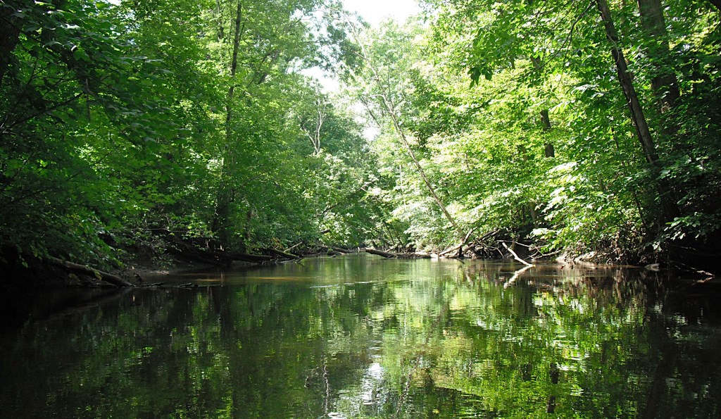 This stretch of the Dowagiac River, from M51 to Peavine Street, is different from most southwestern Michigan rivers. Most rivers are bathed in sunshine. The Dowagiac River is shaded by the forest canopy. Sunlight filters through in some places. You can leave your sunscreen at home.