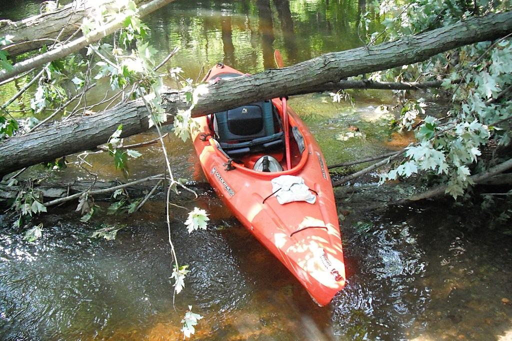 During my trip, I discovered two abandoned rental kayaks. Each one was thoroughly stuck in a log jam. I found out that the kayakers walked out. Quitting is for sissies.