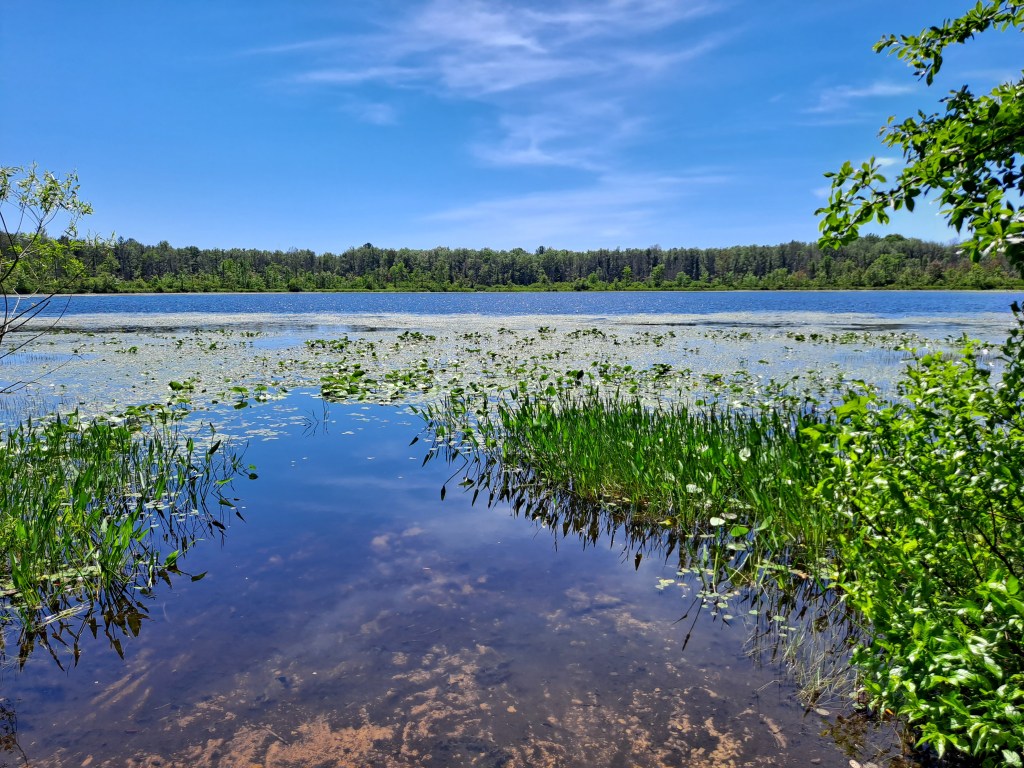 Little Tom Lake is remote. Most of the shoreline is swampy and is backed by woods.