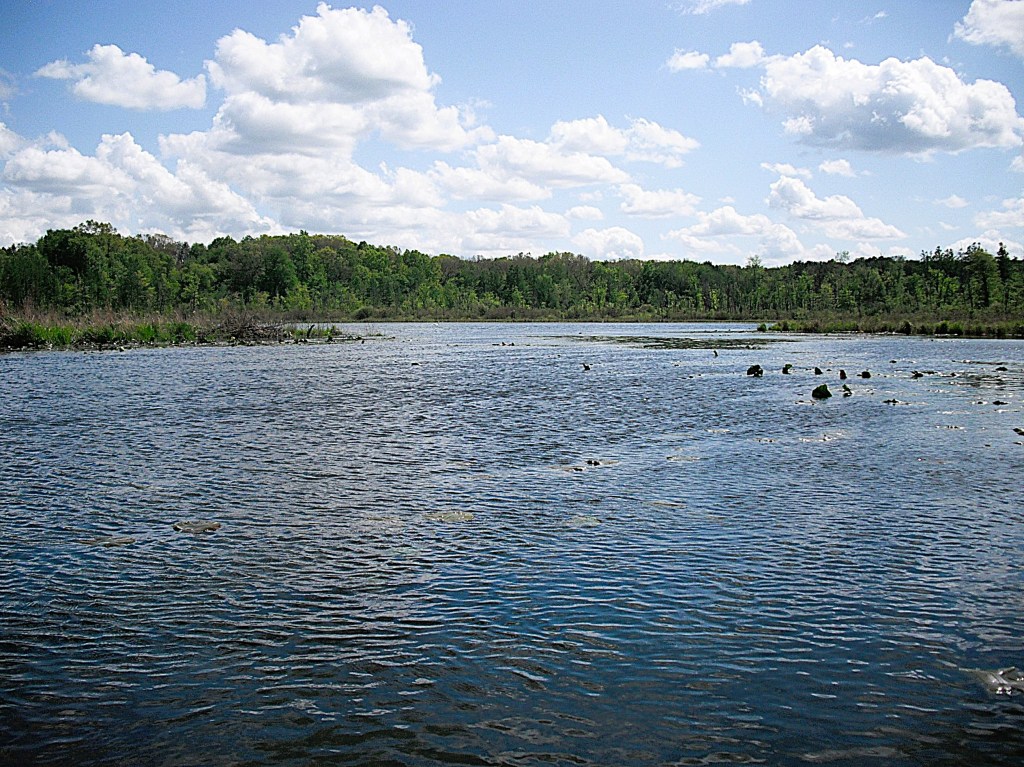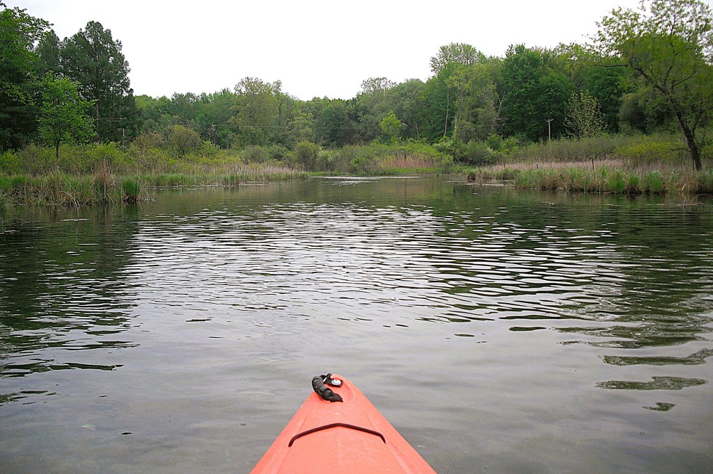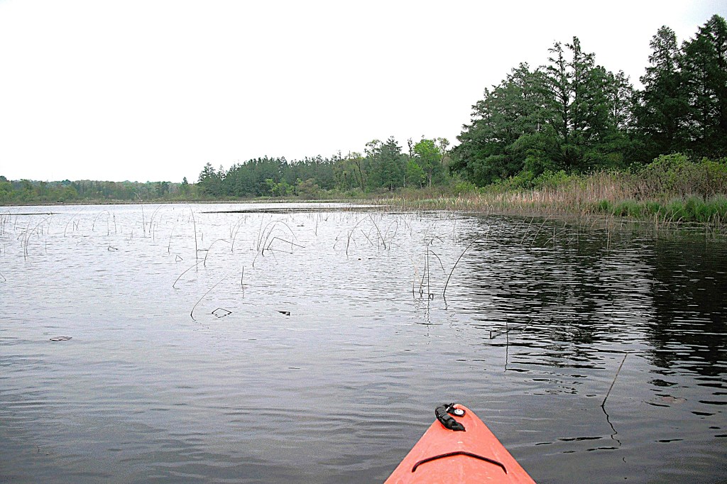 The trip begins by heading upstream from the bridge. It’s a short paddle from the access at Greer Road to Butterfield Lake.