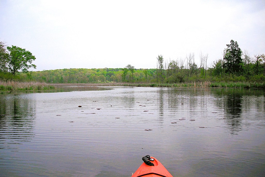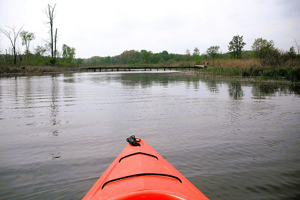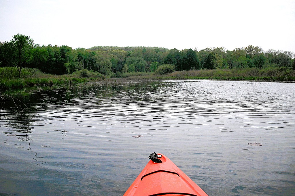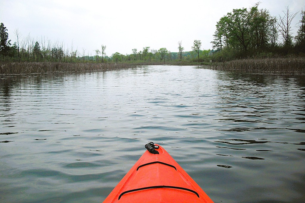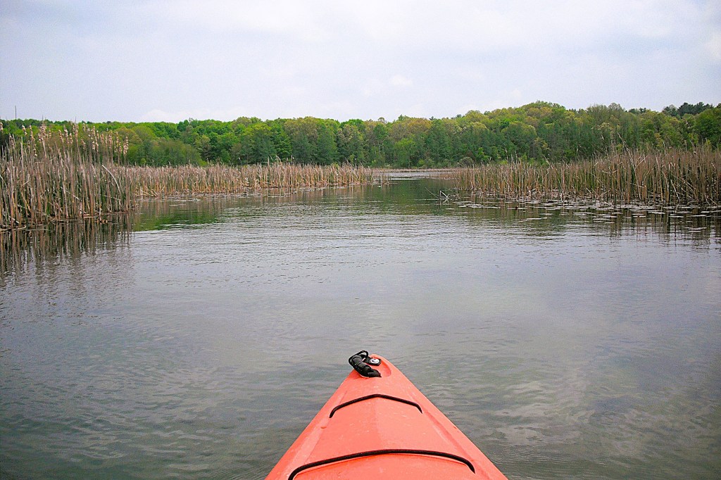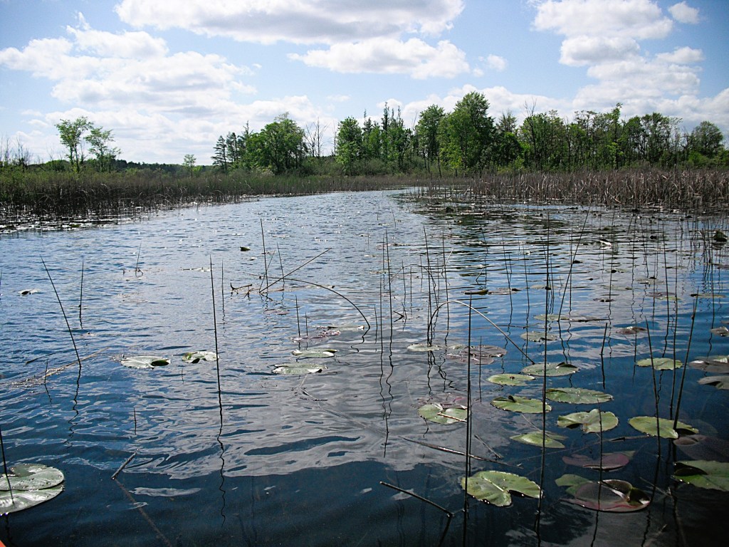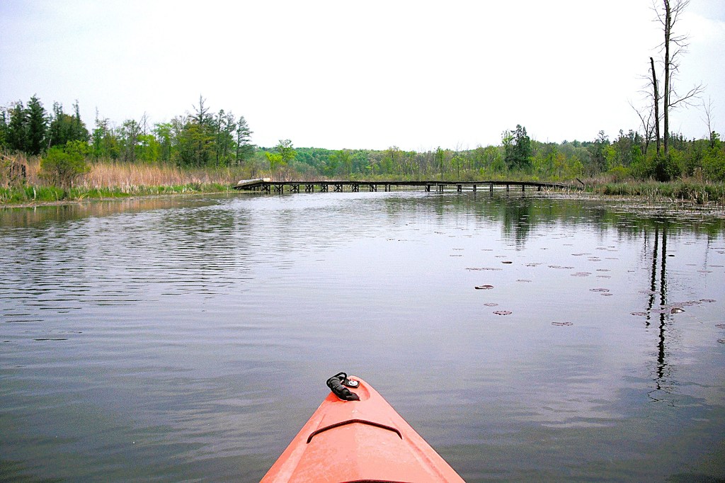 Head upstream on Gull Creek from the north side of Butterfield Lake. Sometimes, the creek is hard to find due to thick vegetation. From Butterfield Lake to Graham Lake, the creek travels through marshland. There is a rickety footbridge that crosses the creek in the middle of the swamp. You can go under the bridge by slouching way down in your kayak. If you can’t get low enough, you can always portage the bridge, but it’s kind of a pain because of the swampy shoreline. I usually get out of my kayak directly onto the bridge, pass my kayak under the bridge, and lower myself into my boat. I find that this process is rather awkward, but it works.