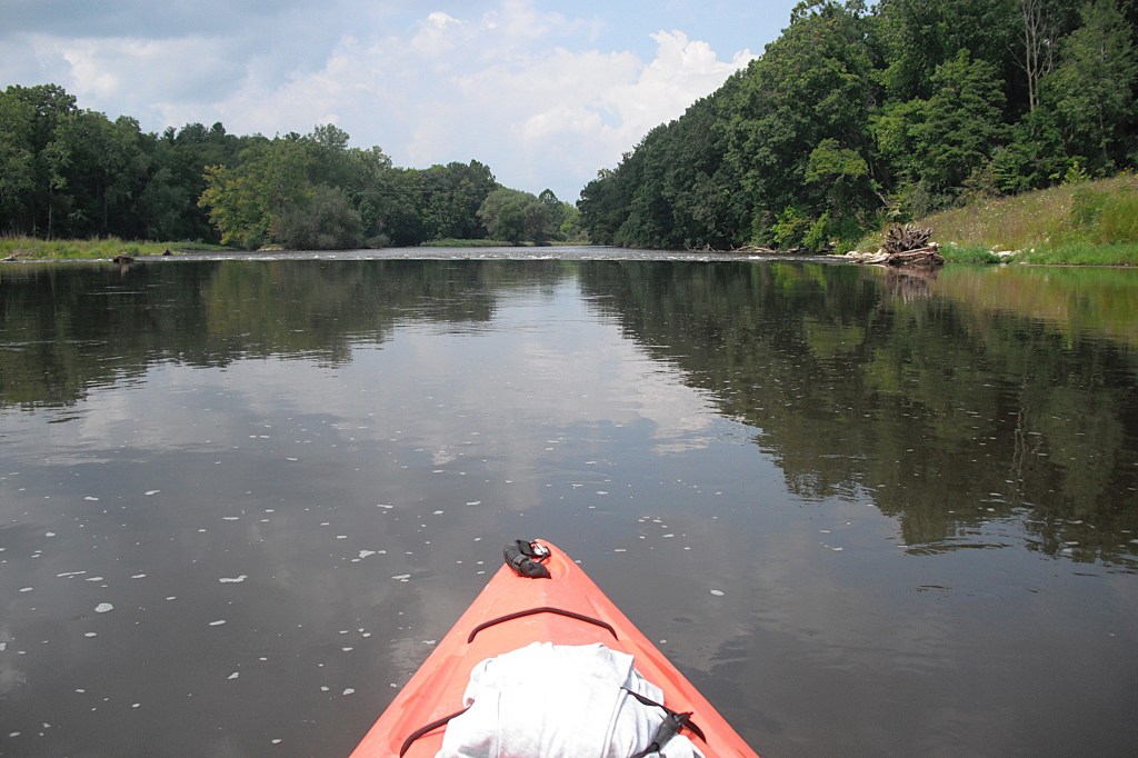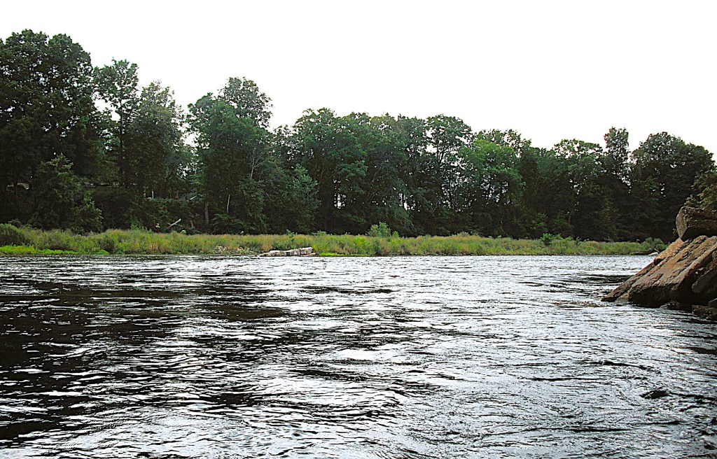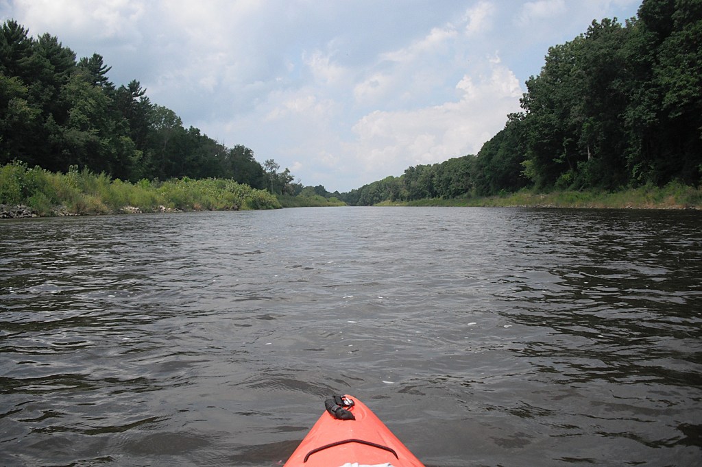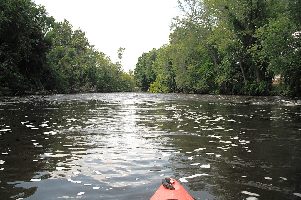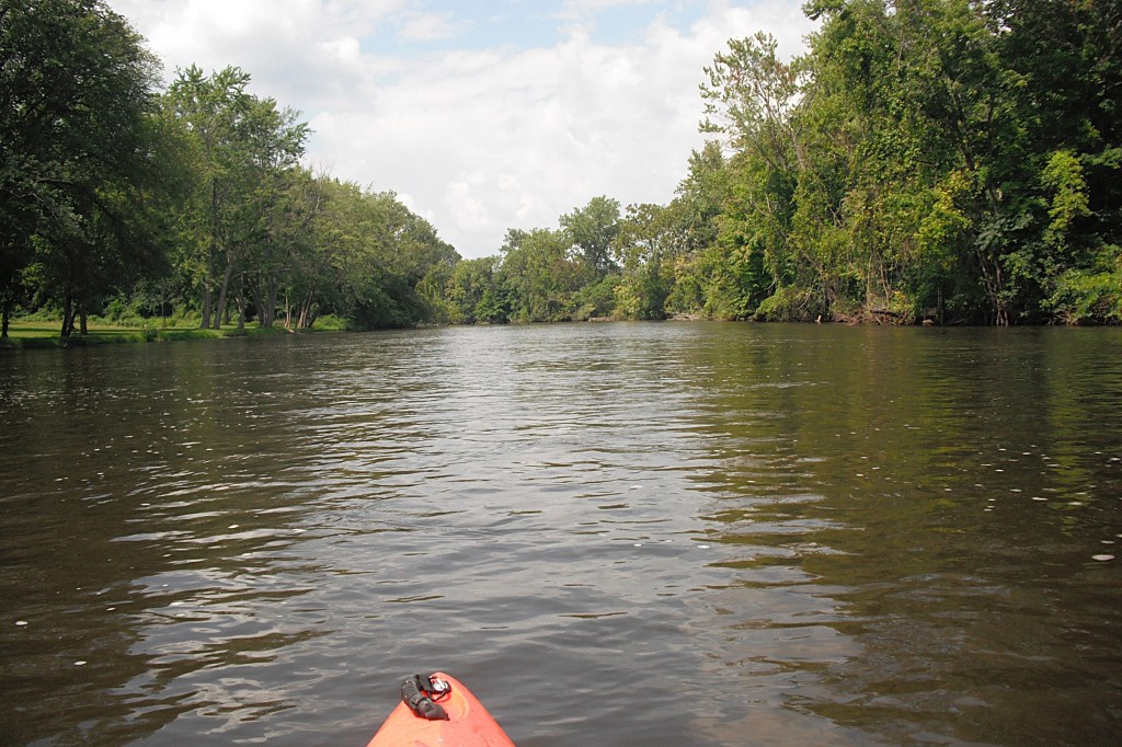 Farther downstream, there is a golf course on the bank of the river. The river widens and the current slows to a crawl at the golf course and remains that way down to Trowbridge Dam.