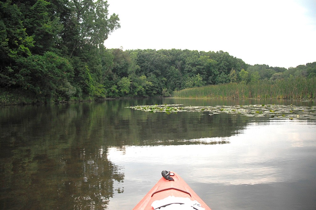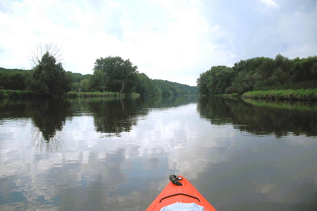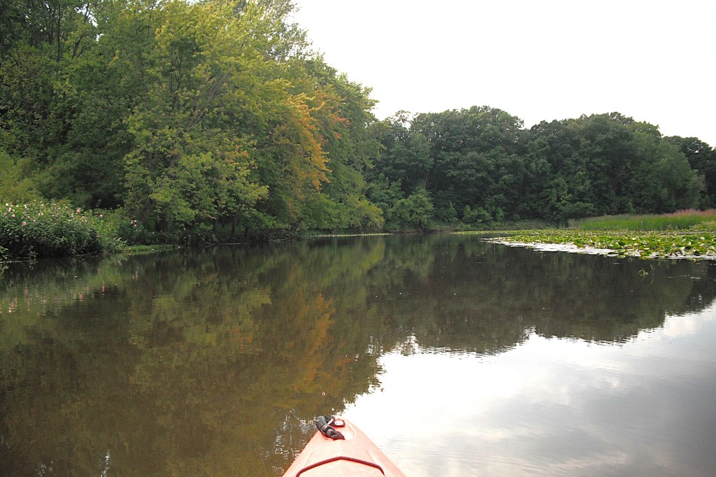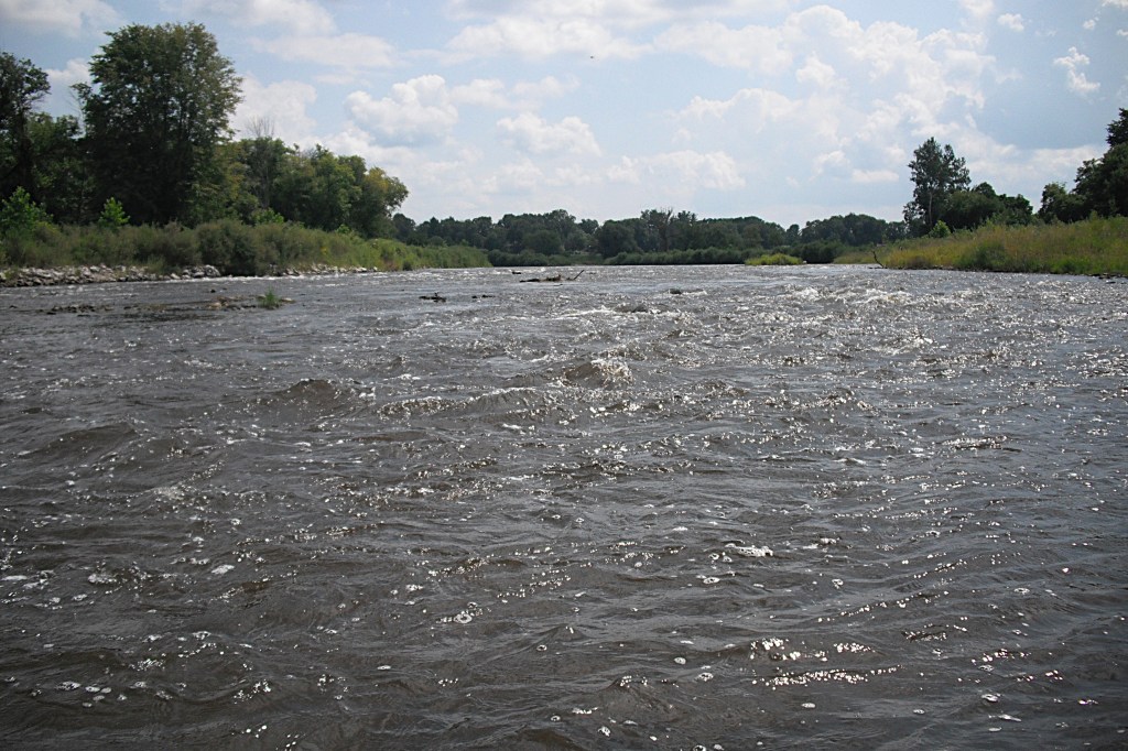 Farther downstream, there is a golf course on the bank of the river. The river widens and the current slows to a crawl at the golf course and remains that way down to Trowbridge Dam.