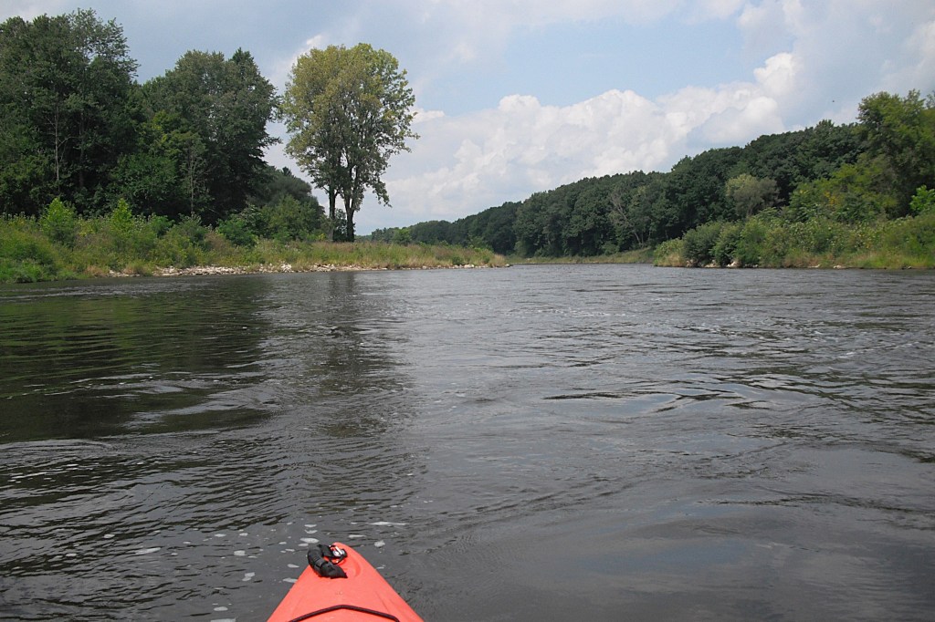 The mouth of Pine Creek is a good spot to begin preparing for the third set of rapids. This rapids is the longest and the most difficult. I positioned my kayak on the south (left) side of the river, fairly close to the river bank. Some of the standing waves are quite big and you can’t miss all of them. Be prepared for waves breaking over the bow of your kayak. Some may wash into your cockpit if you don’t have a spray skirt. On one of my trips during high water levels, I took on a lot of water. I could hardly paddle with all that water sloshing around. I had to pull up on the riverbank and empty it out. A spray skirt would have come in handy. Lesson learned!