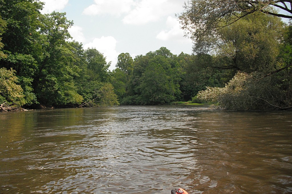 Continuing downstream, a boat landing is on the south side of the river. The vehicle entrance for the landing is on Jefferson Road, across the street from the Pine Creek Impoundment.