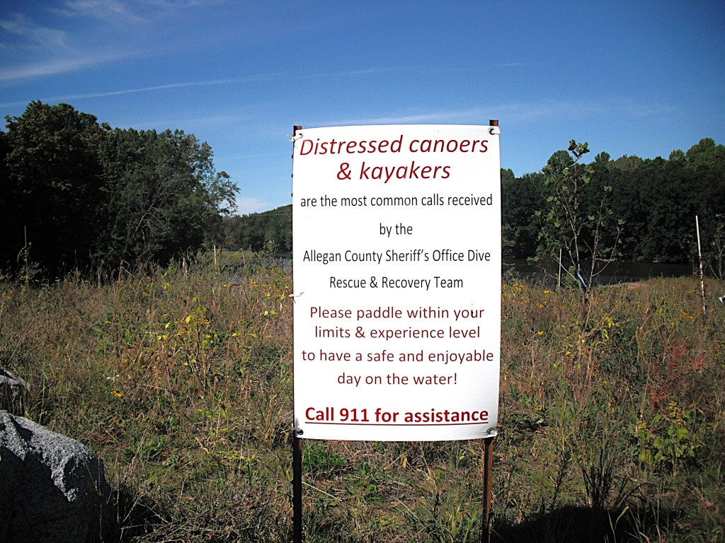 If you are unsure about your ability to handle rapids, a scouting trip on dry land might be helpful. I was a little apprehensive about this voyage, so I decided to take a scouting trip. What could it hurt? Rapids number one can be seen from the Farmer Street bridge in Otsego. The other three rapids are west of Otsego. Rapids number two can be viewed from the highway M89 bridge deck. To see rapids number three, hike west from a small parking area at the end of 19th Street, on the north side of the river. There is a river access site at rapids number four on River Road, on the south side of the river.