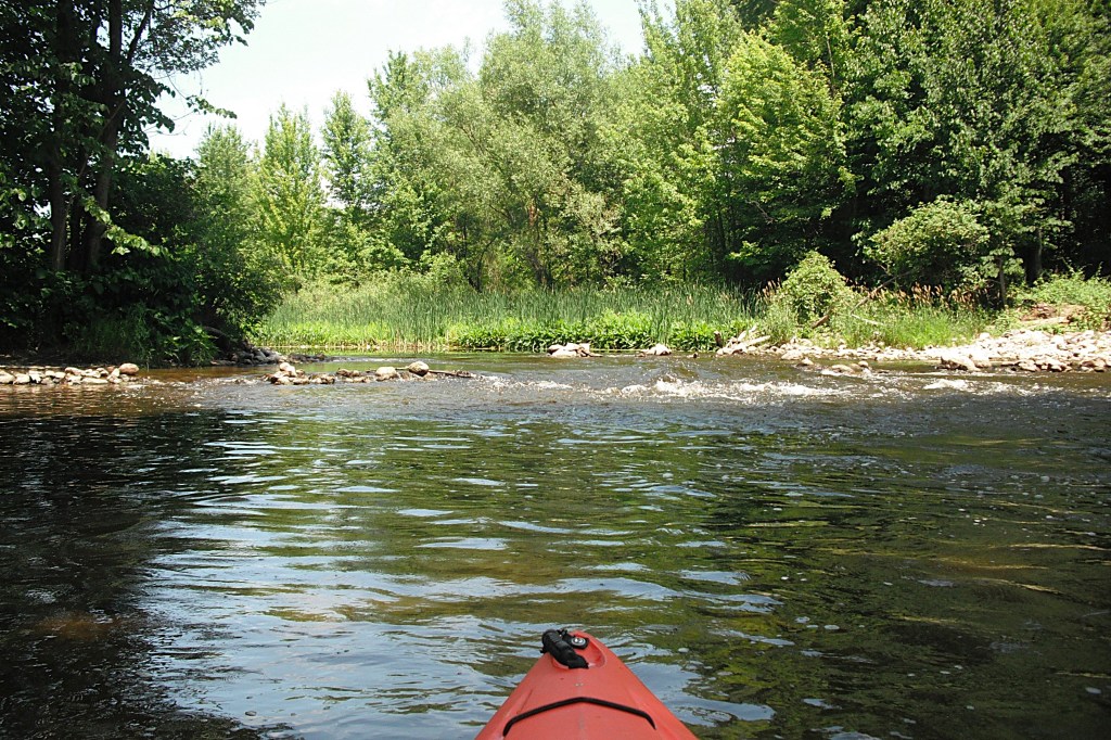 Between Parkville and North Fisher Lake Road, there are a lot of fallen trees in the river. The last time that I paddled this segment, I didn’t have to portage any of the trees.
