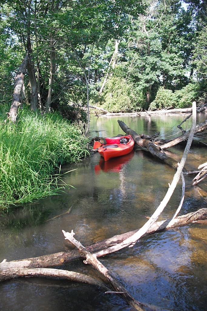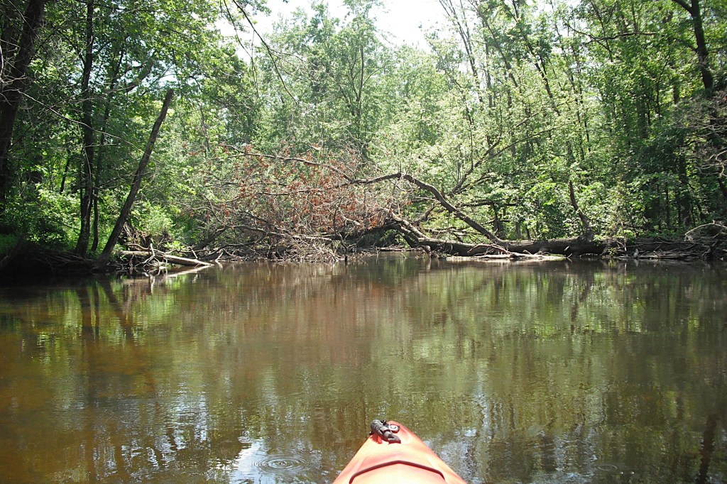 There are many downed trees in the river to test your kayaking skills. The last time that I was on this section, I only had to portage trees once.