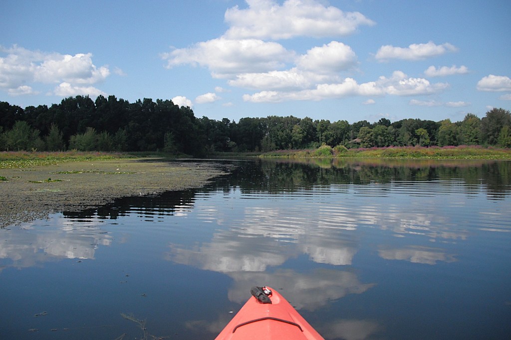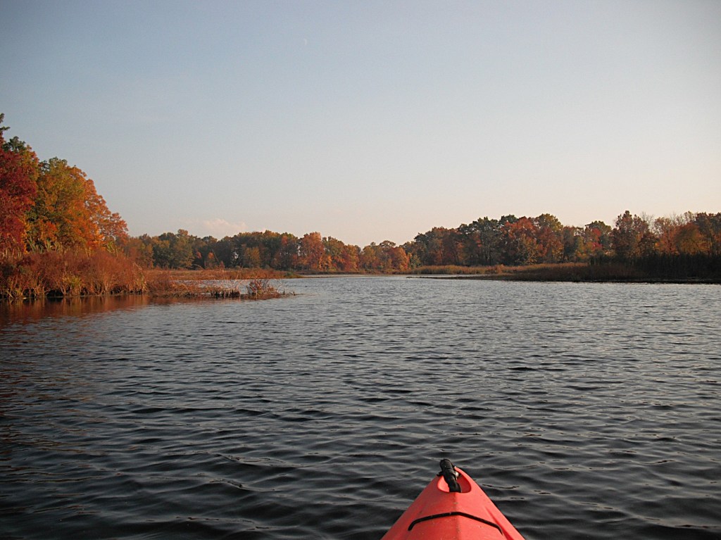 Head northeast across the lake from the boat landing to the mouth of the creek. The creek mouth is difficult to spot from a distance because all of the shoreline looks the same – cattail marsh. The stream is bordered by wetlands for most of this segment. The lower portion of the creek is wide with very little current.