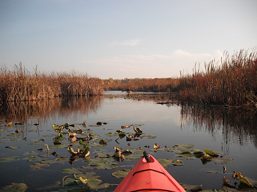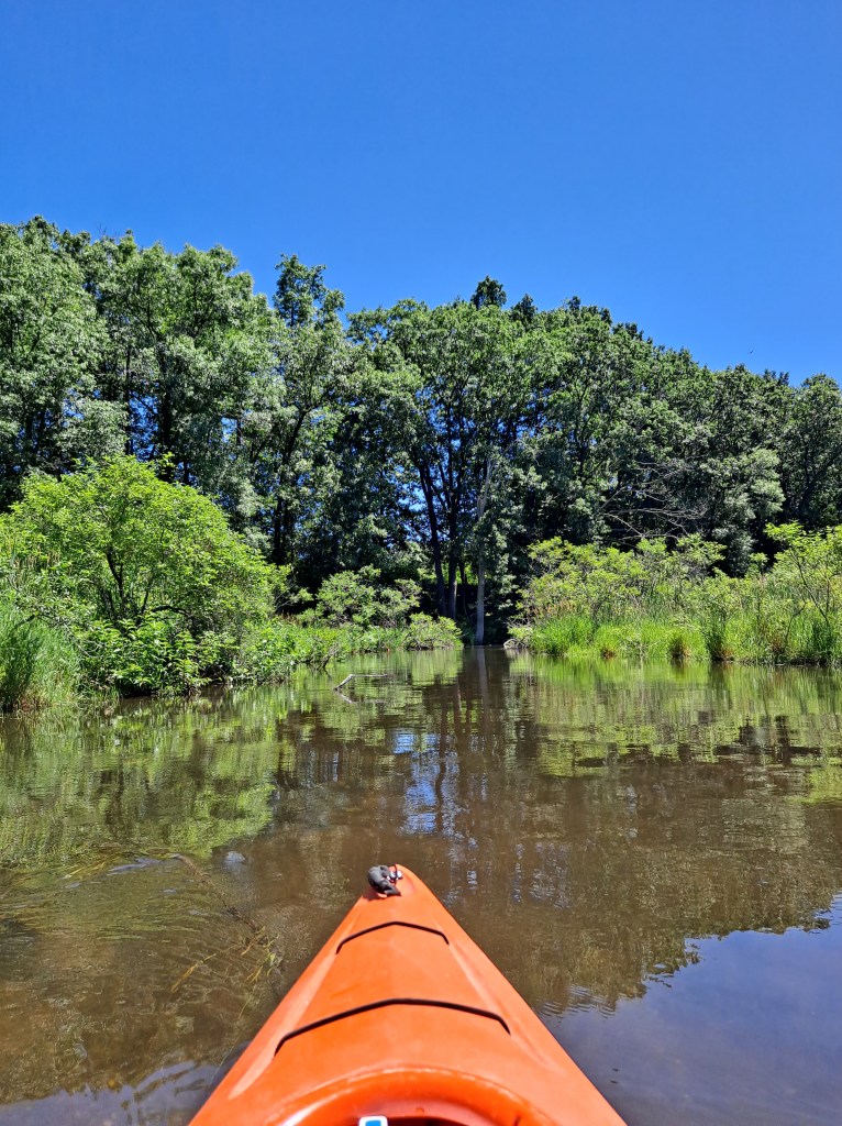 For most of this trip, the creek flows through cattail marshes. Places to get out of your kayak and take a break are few and far between. The creek heads northeast from the Silver Street bridge, then turns south to Portage Lake.