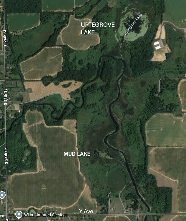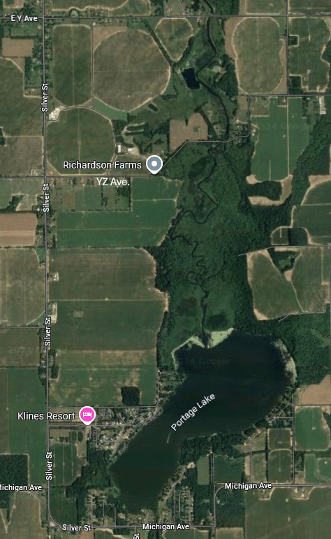 The Silver Street (South 24th Street) bridge is the beginning of this segment. The day trip ends at the MDNR Portage Lake access site. When I look back at this trip, it was a long day of paddling. I wish that I would have divided it into two trips. There are two places to access Portage Creek that are in the middle of the lengthy segment: the Y Avenue bridge and the YZ Avenue bridge. Either one of these two bridges is a good place to break the segment into two separate voyages. There are no formal boat landings at the bridges. Put-in, take-out, and parking are on the side of the road.