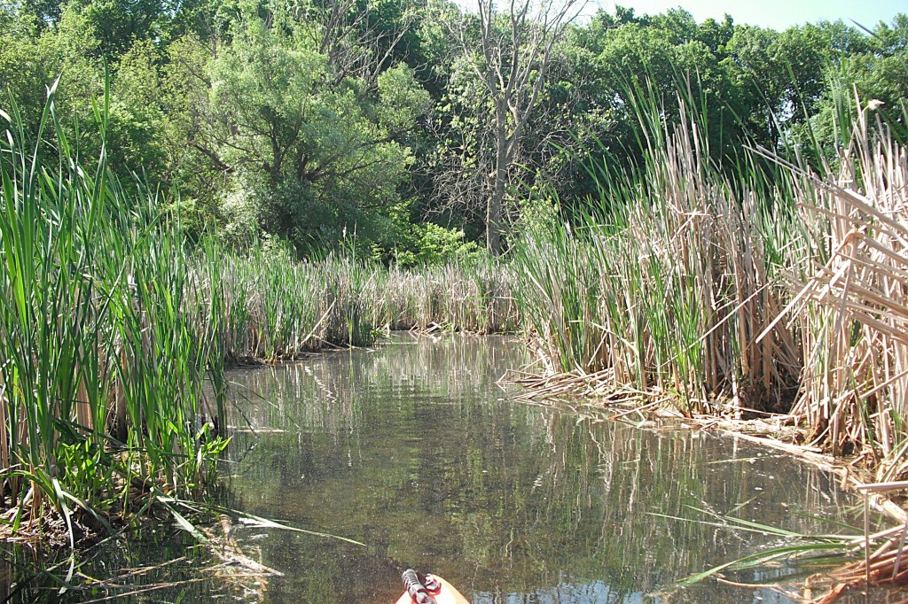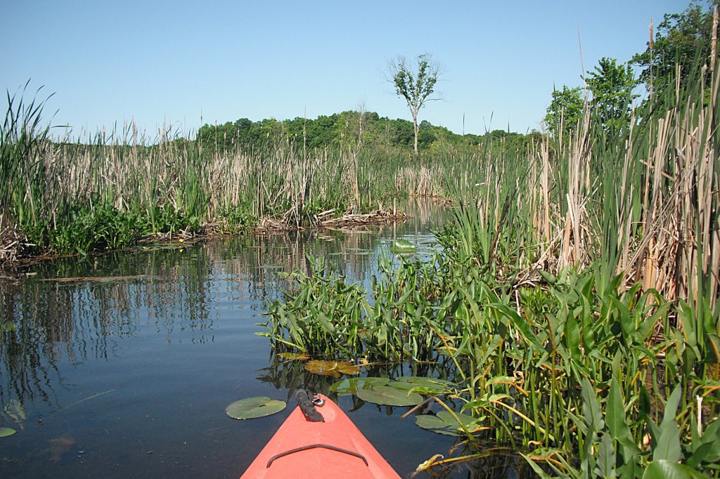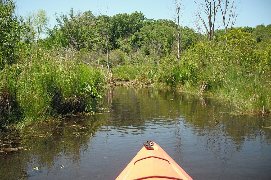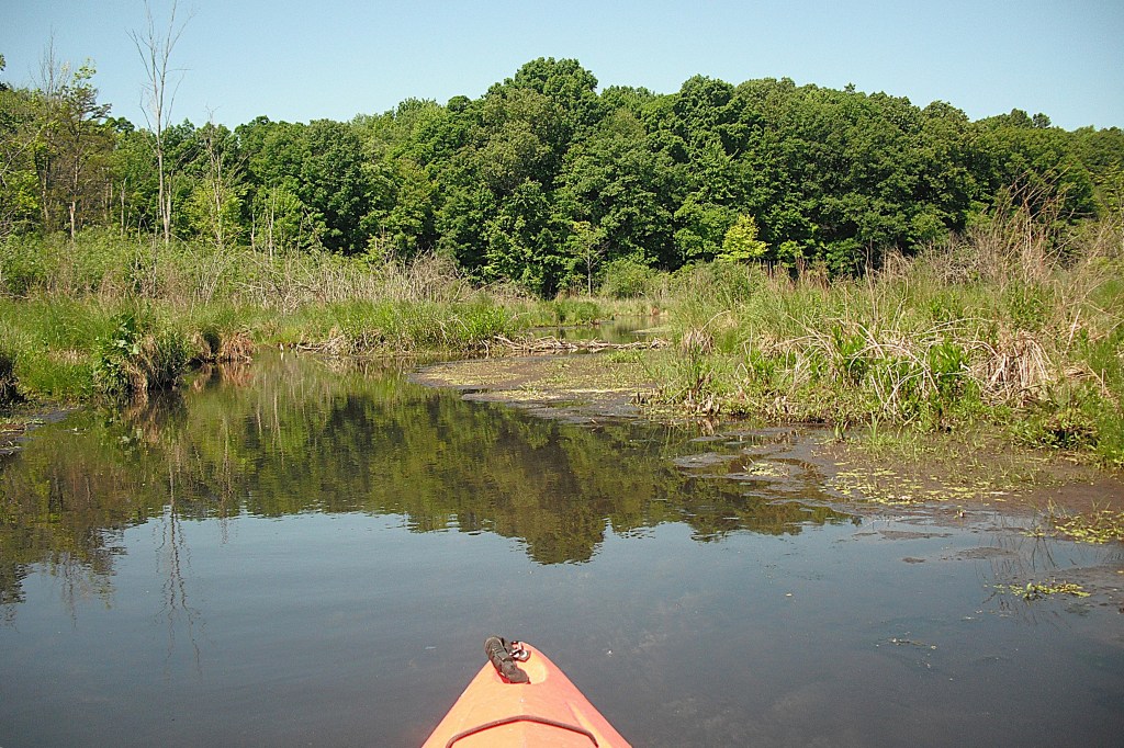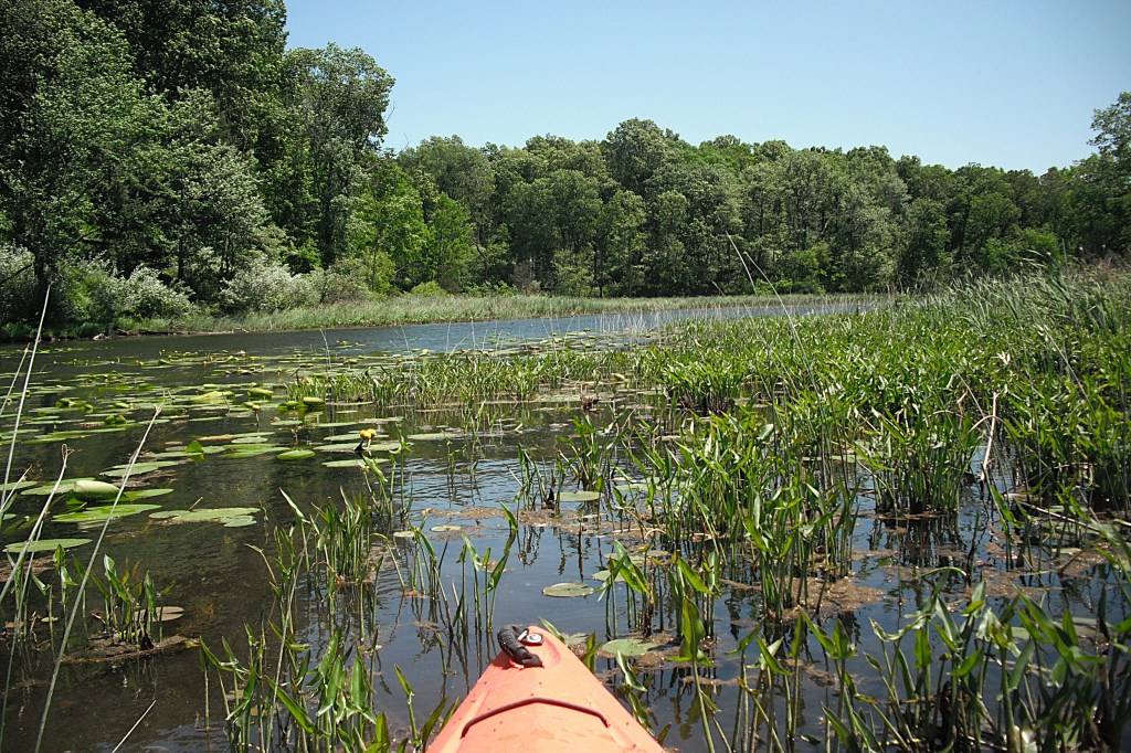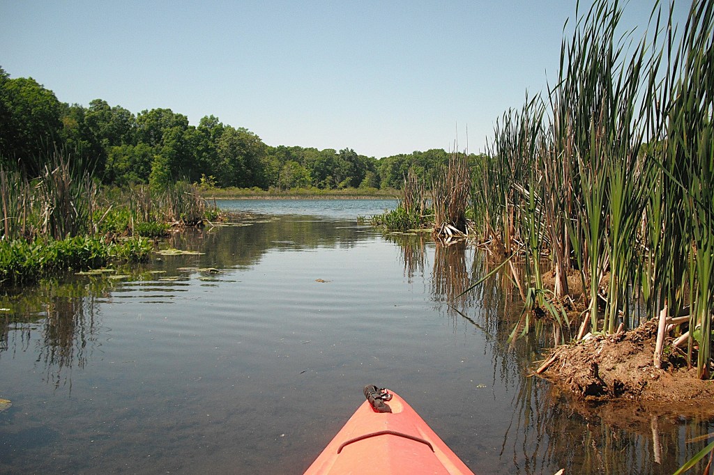 The mouth of the creek that provides access to West Lake is on the west end of Middle Lake.