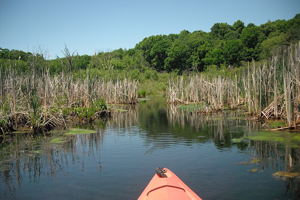 A small, unnamed creek flows into West Lake. It’s fun to explore, but I found it difficult to paddle due to shallow water, mud, and old beaver dams. It was easier to paddle the creek when the beaver dam in the channel was still in place. It’s still worth checking out.