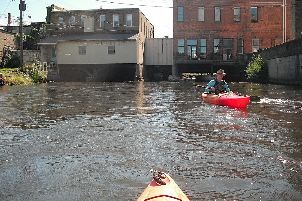 My friend Dan always enjoys a good river trip, so we teamed up for a July trip on the Kalamazoo. It’s a pleasant paddle through the city of Albion. The Cass Street bridge is just downstream from the Porter Street Landing.