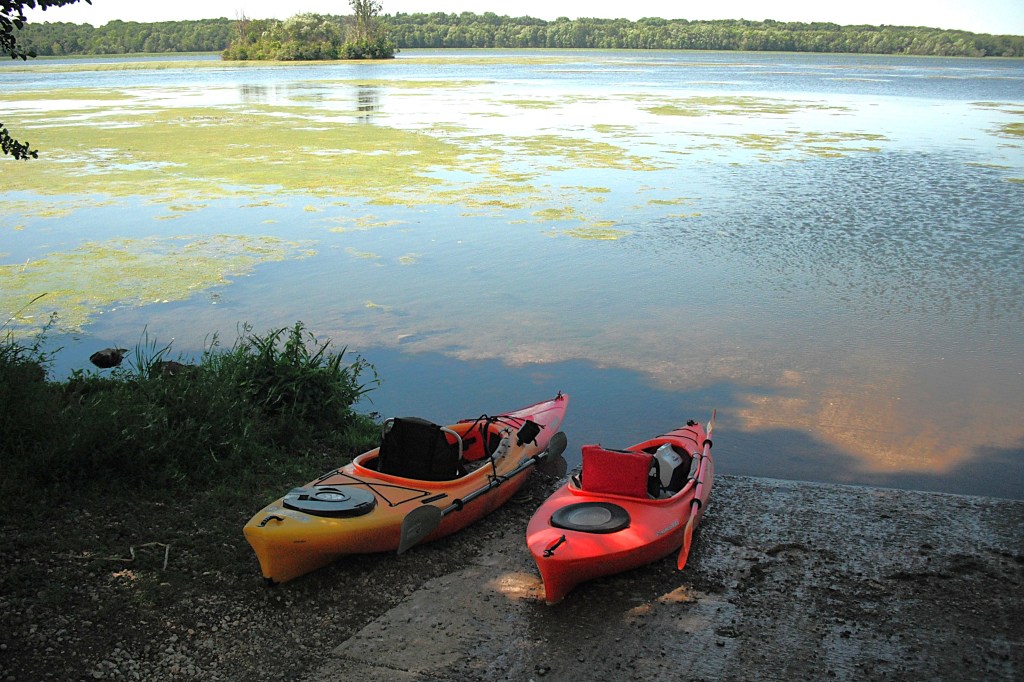 The trip starts at the MDNR Morrow Lake Access Site. Take Rosemont Road south from highway M96, about halfway between Comstock and Galesburg. The boat landing is at the end of Rosemont Road, on Plaza Avenue.