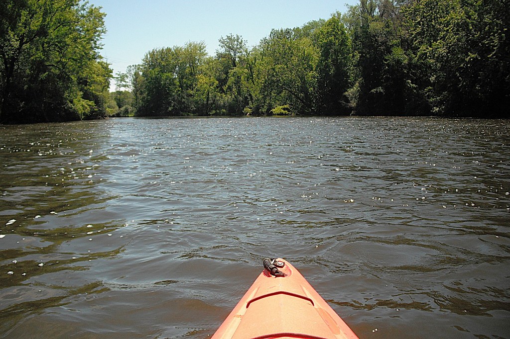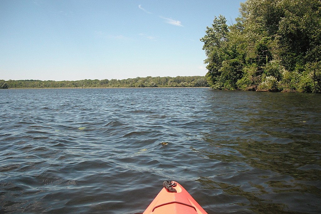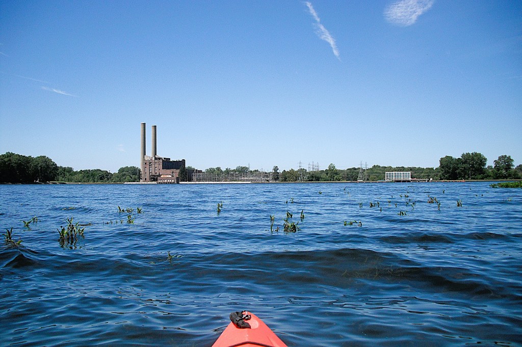 At the dam, there is a concrete seawall extending north from the hydro-electric power plant. Next to a “Canoe Portage” sign, there is a steel platform hanging from the wall that is suspended above the water. Slide out of your kayak onto the platform, stand up, and lift your kayak over the wall. I thought the process was rather awkward, almost difficult. I still have the imprint of that grate on my butt.