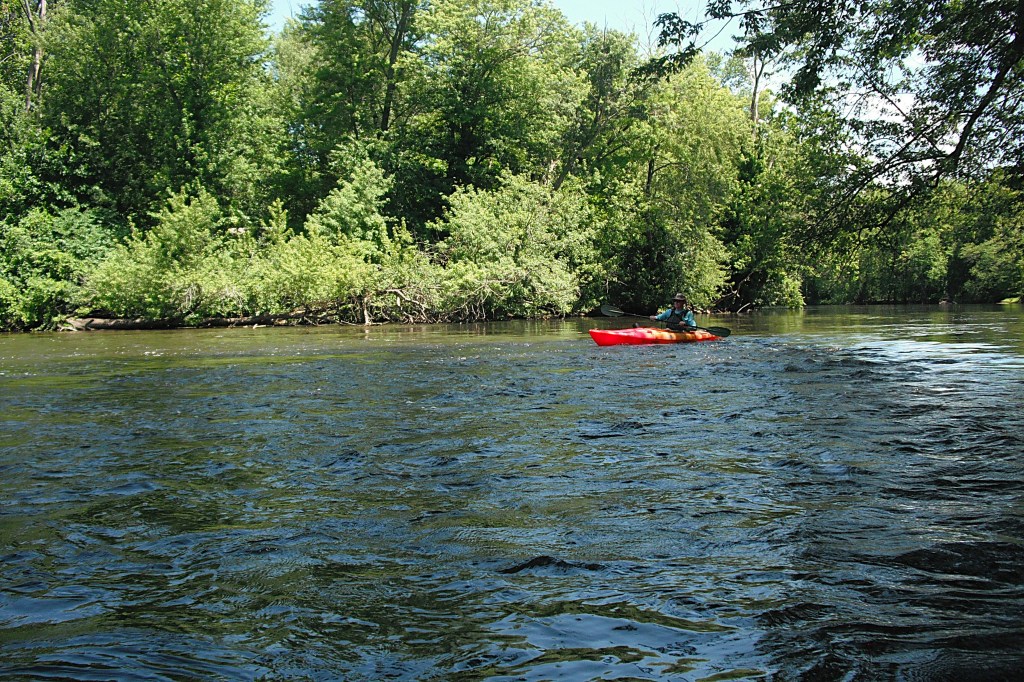 Between the island and the River Street bridge, there is a small rapids on the south half of the river.