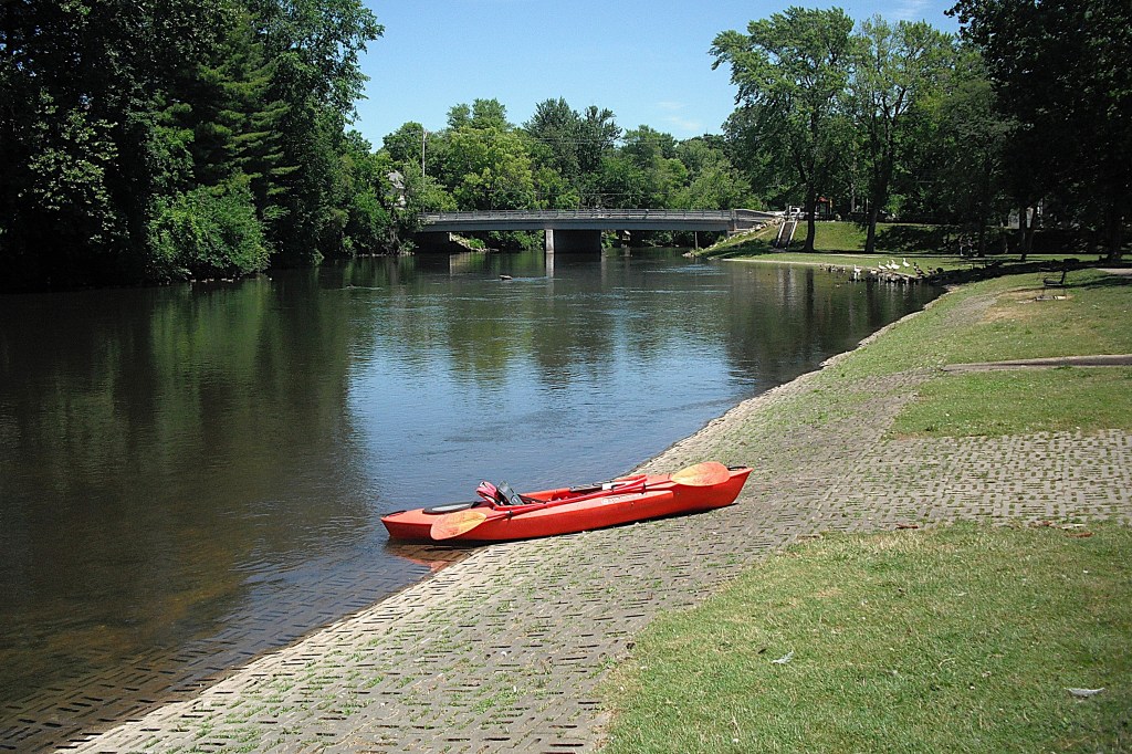 The trip ends at Merrill Park, downstream from the River Street bridge, on the south side of the river. The park is south of Highway M96, on the corner of River Street and Comstock Avenue.