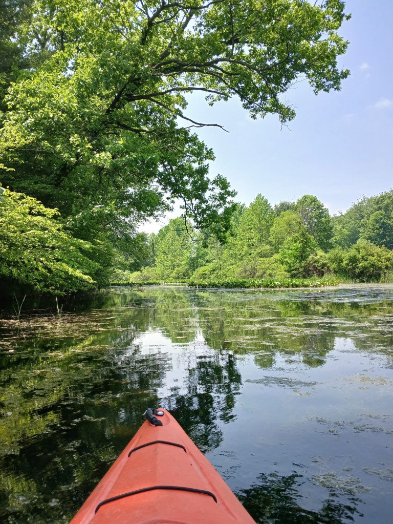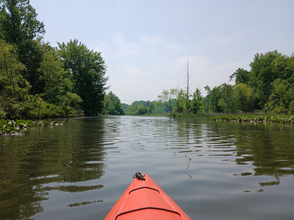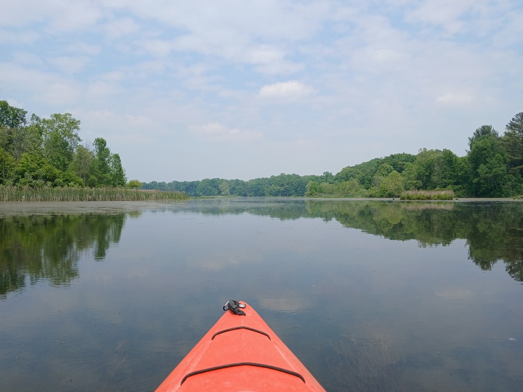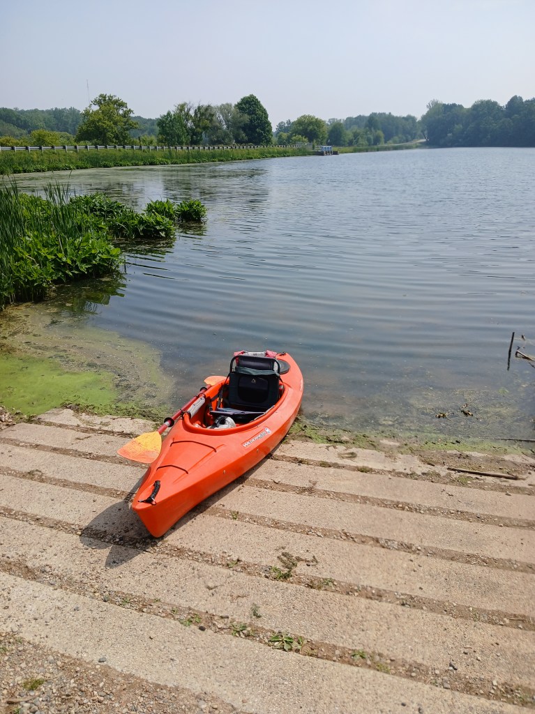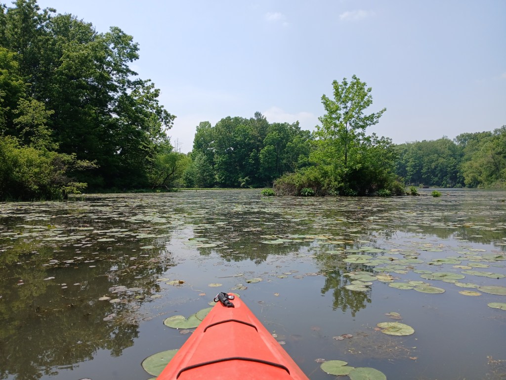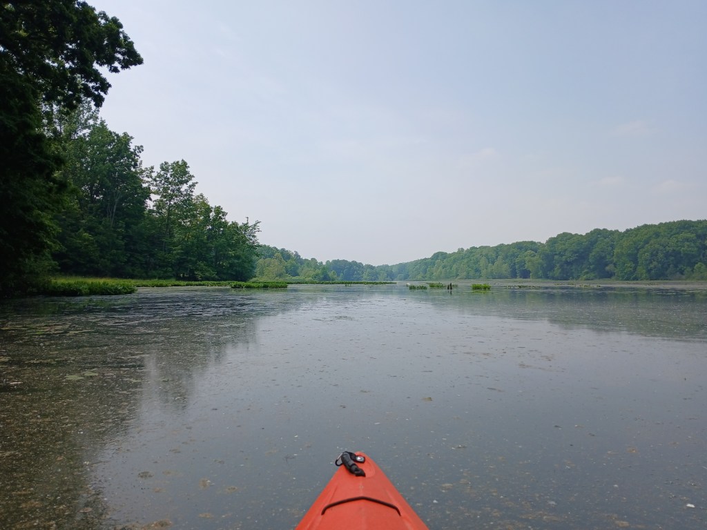 I took my trip on a weekday in early June and my kayak was the only boat on the lake. Watch for shallow water. It’s easy to get stuck in the mud. On some portions of the impoundment, aquatic vegetation can be excessive. I easily explored everyplace that looked interesting, regardless of the vegetation. I thought that the water in the impoundment was cloudy and turbid. The lake looked dirty.