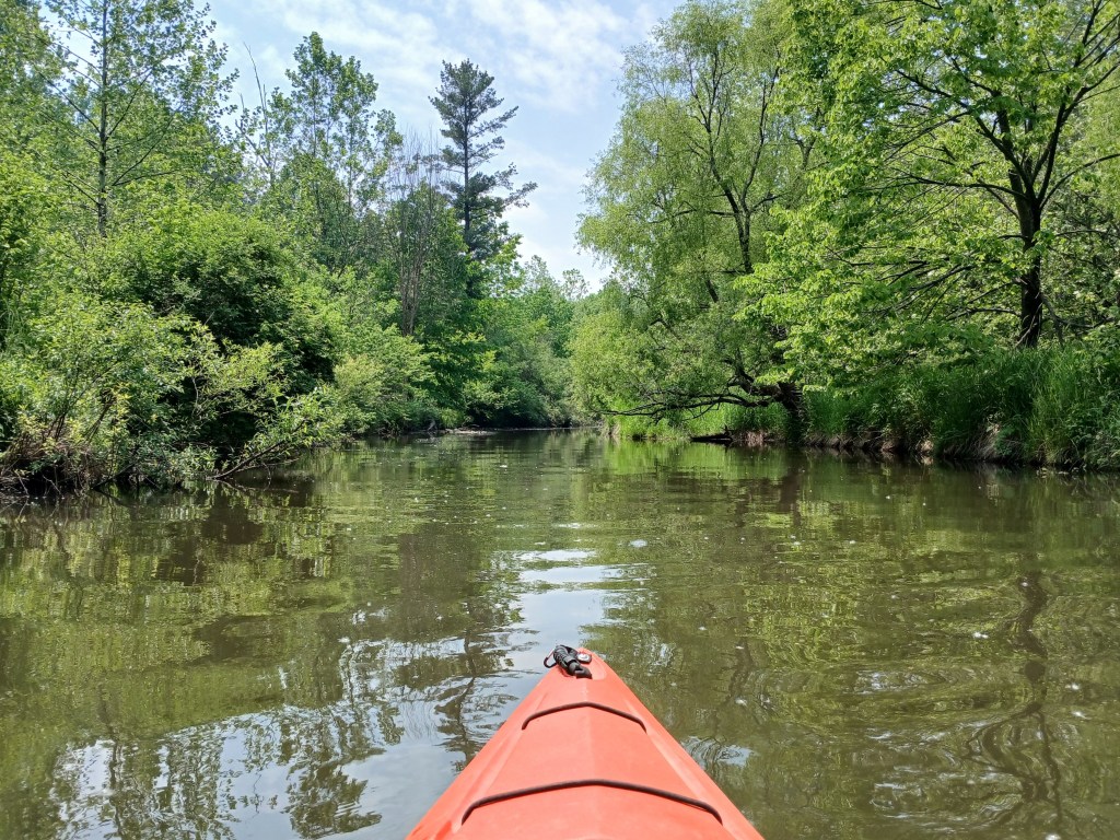 The current in the creek is very slow and the bottom is mud. Paddling upstream on the creek is the best part of the trip.