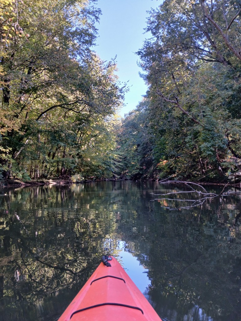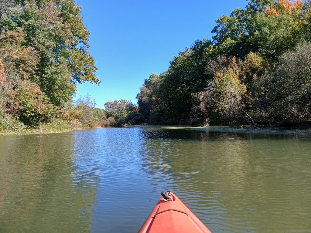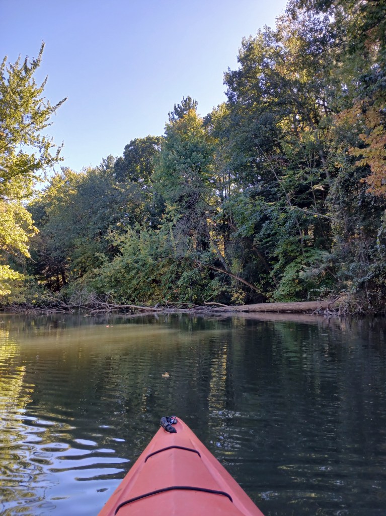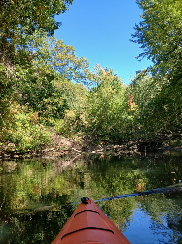 Some of the downed trees were challenging to paddle through or around, but I never had to portage.