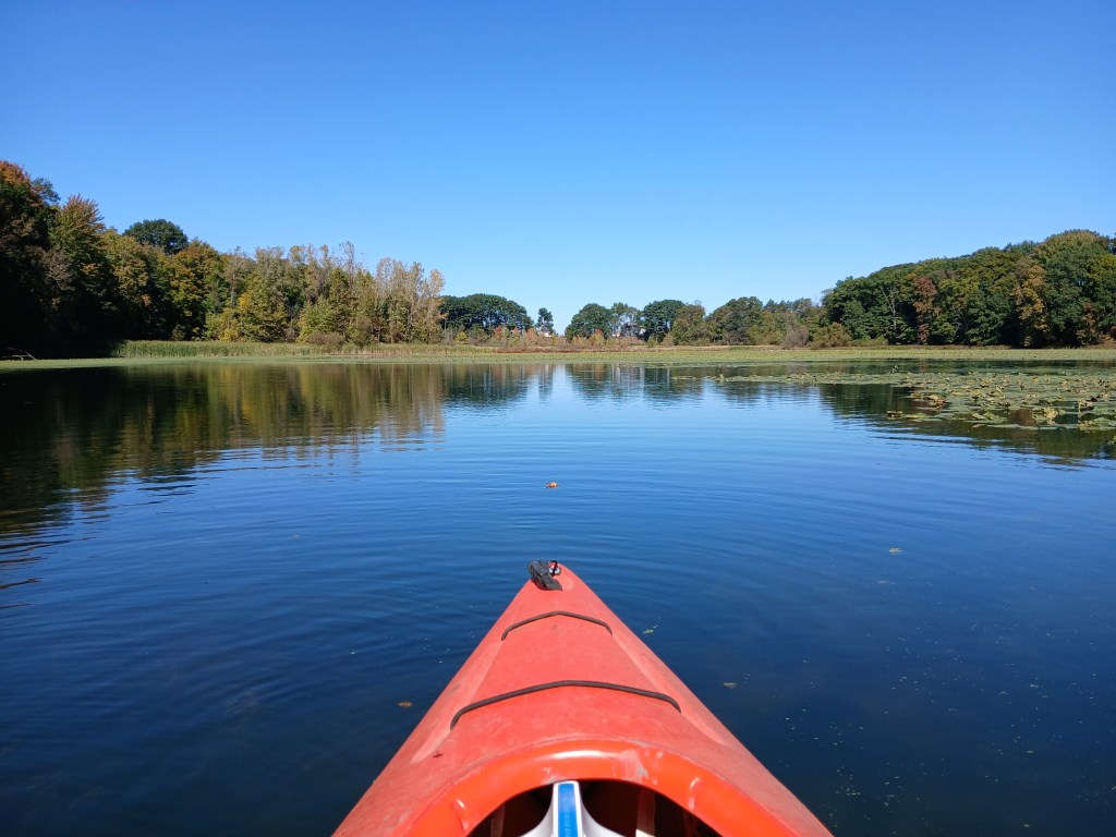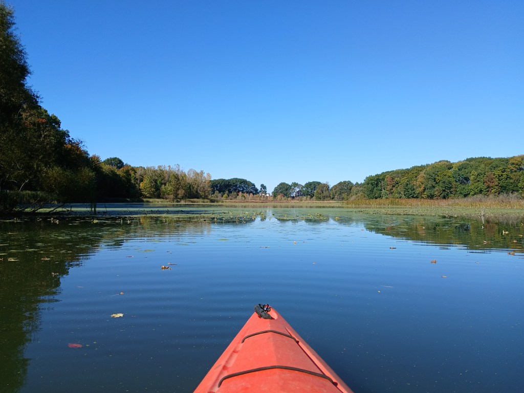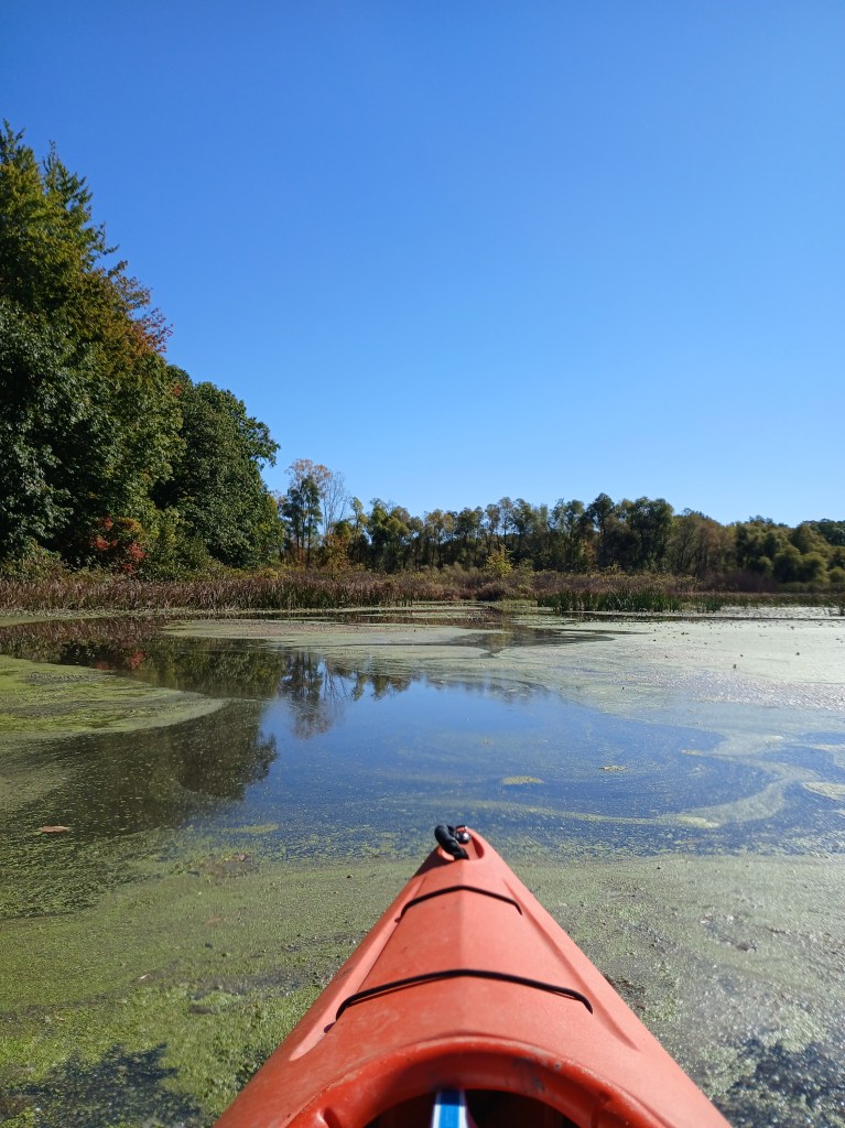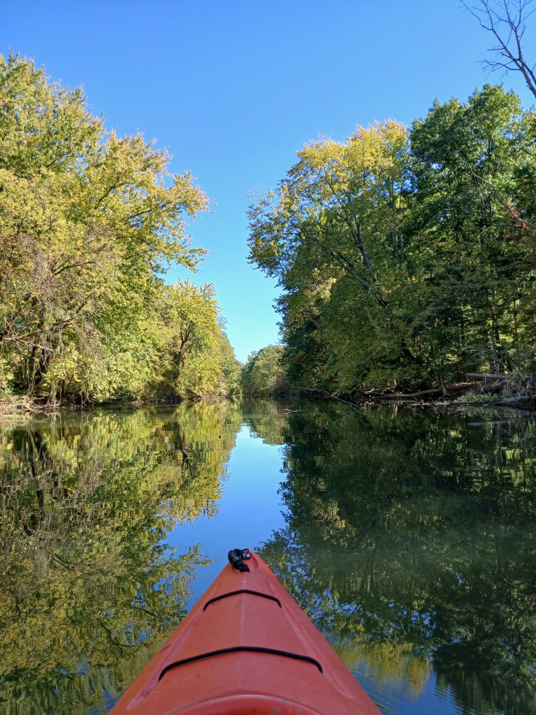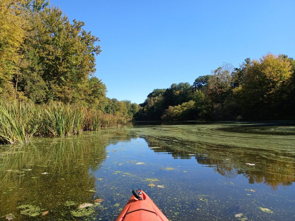 Some of the downed trees were challenging to paddle through or around, but I never had to portage.