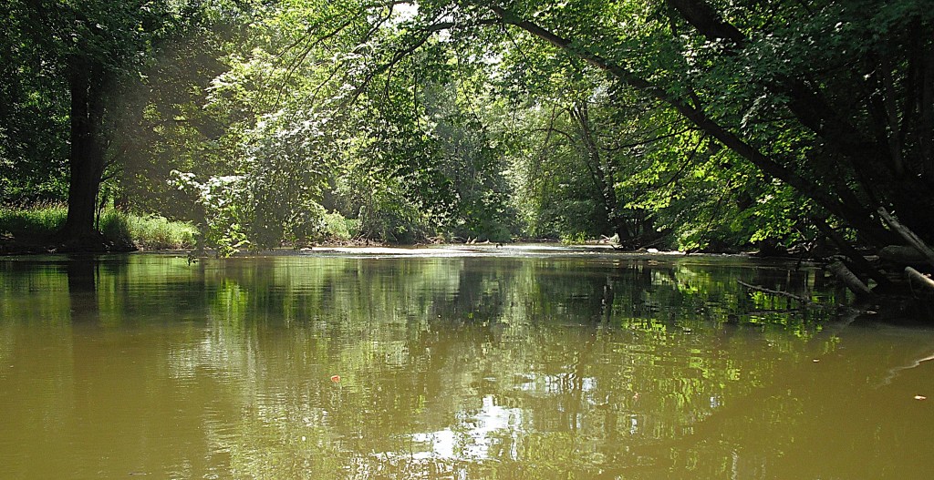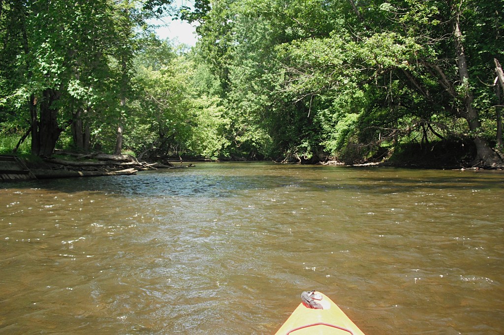 The slow stretches are followed by brief sections of shallow, fast, riffled water (not quite rapids). The water depth in these riffles ranges from a foot to only a few inches.