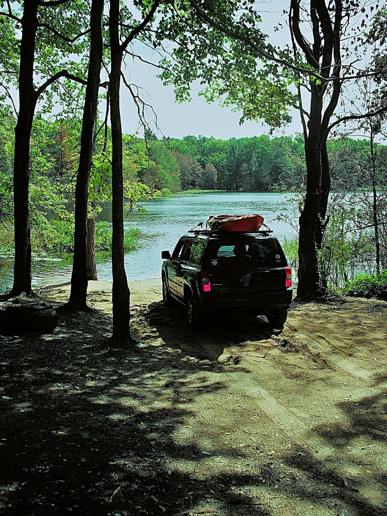 The site has a couple of picnic tables, making it a scenic, shady spot for my lunch. I have been known to take a dip in the lake here also.